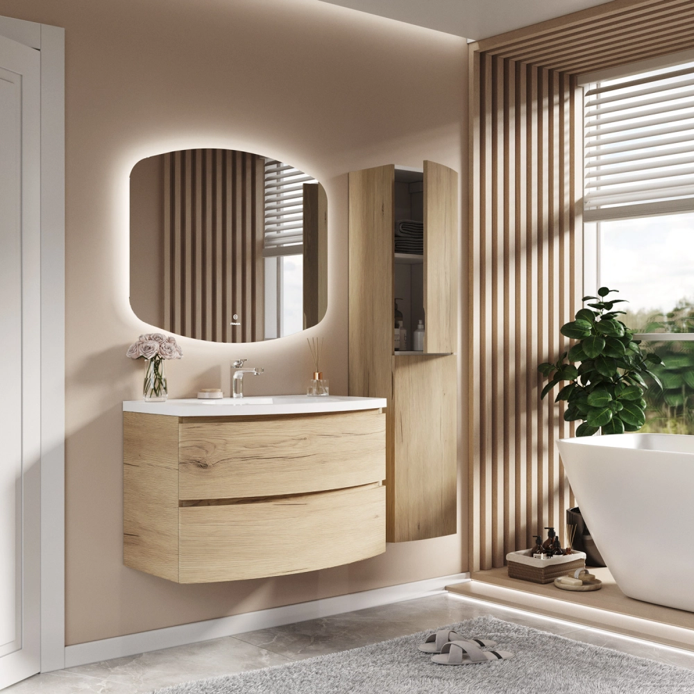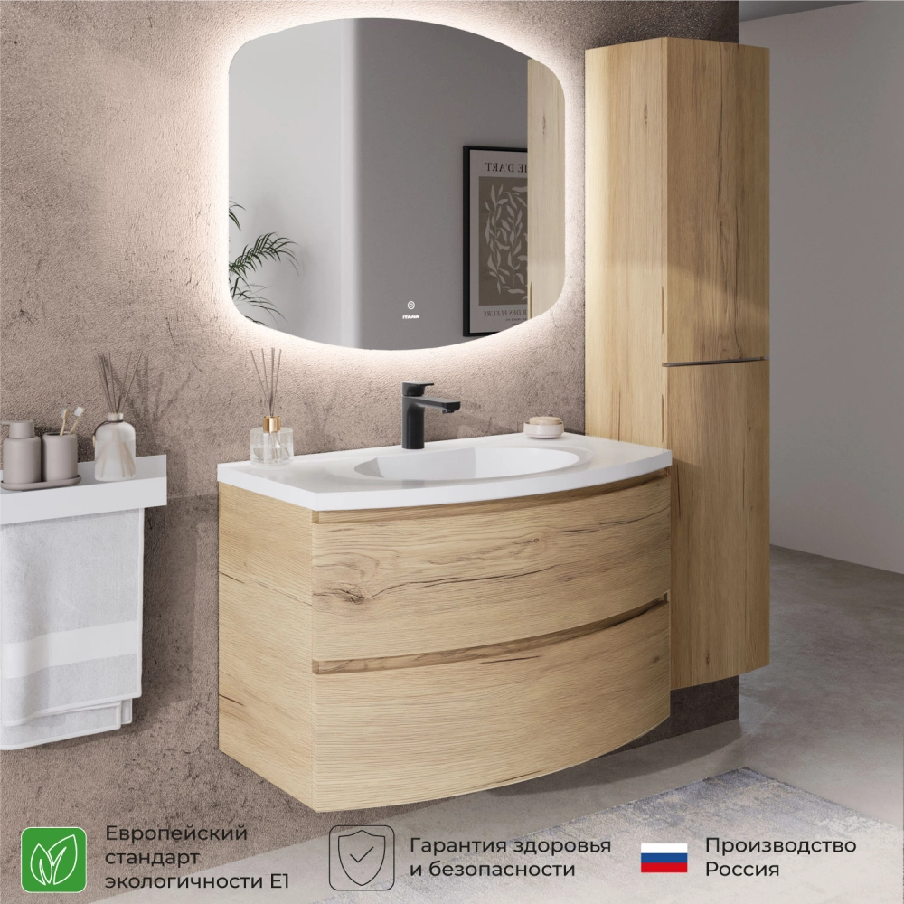 Тумба с раковиной подвесная Итана Arko 90 с радиусными фасадами Дуб Мавелла Голд