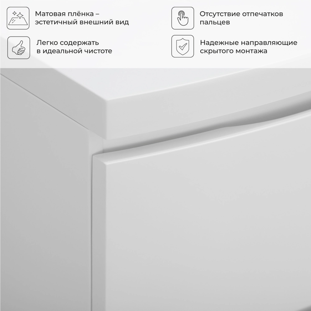 Подвесная тумба с раковиной Итана Arko 70 станет не только стильным акцентом для вашей ванной комнаты. Эстетически привлекательный дизайн с радиусными фасадами подчеркивает современный стиль интерьера. Благодаря подвесной конструкции, такая мебель значительно упрощает уборку, обеспечивая легкий доступ к полу. Тумба с раковиной в ванную изготовлена из высококачественных материалов, что гарантирует долгий срок службы и сохранность внешнего вида на протяжении многих лет. Продуманное до мелочей исполнение фасадов, мягкость линий и современный дизайн делают её отличным дополнением к любой ванной комнате. Качественная фурнитура с доводчиками обеспечивает легкое открывание и плавное закрывание ящиков. Тумба с раковиной с ящиками, где можно рационально распределить и разместить все необходимые вещи для ванной комнаты. Для точного выбора тумбы рекомендуем обратиться к схеме замеров, которая находится на фото в карточке товара. Размеры изделия могут отличаться +/-1 см в связи со спецификой производства. Подвесная тумба с раковиной приходит в надежной упаковке и в собранном виде.