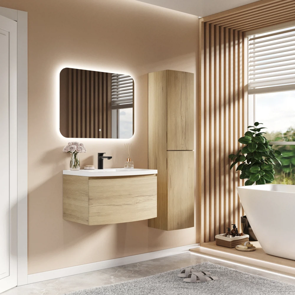 Тумба с раковиной подвесная Итана Arko Y 70 с радиусным фасадом Дуб Мавелла Голд