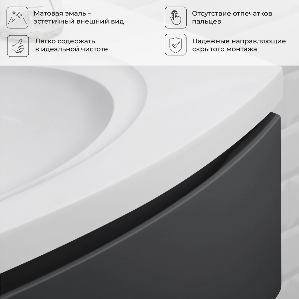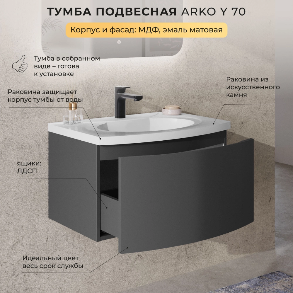 Тумба с раковиной подвесная Итана Arko Y 70 с радиусным фасадом Эмаль Графит