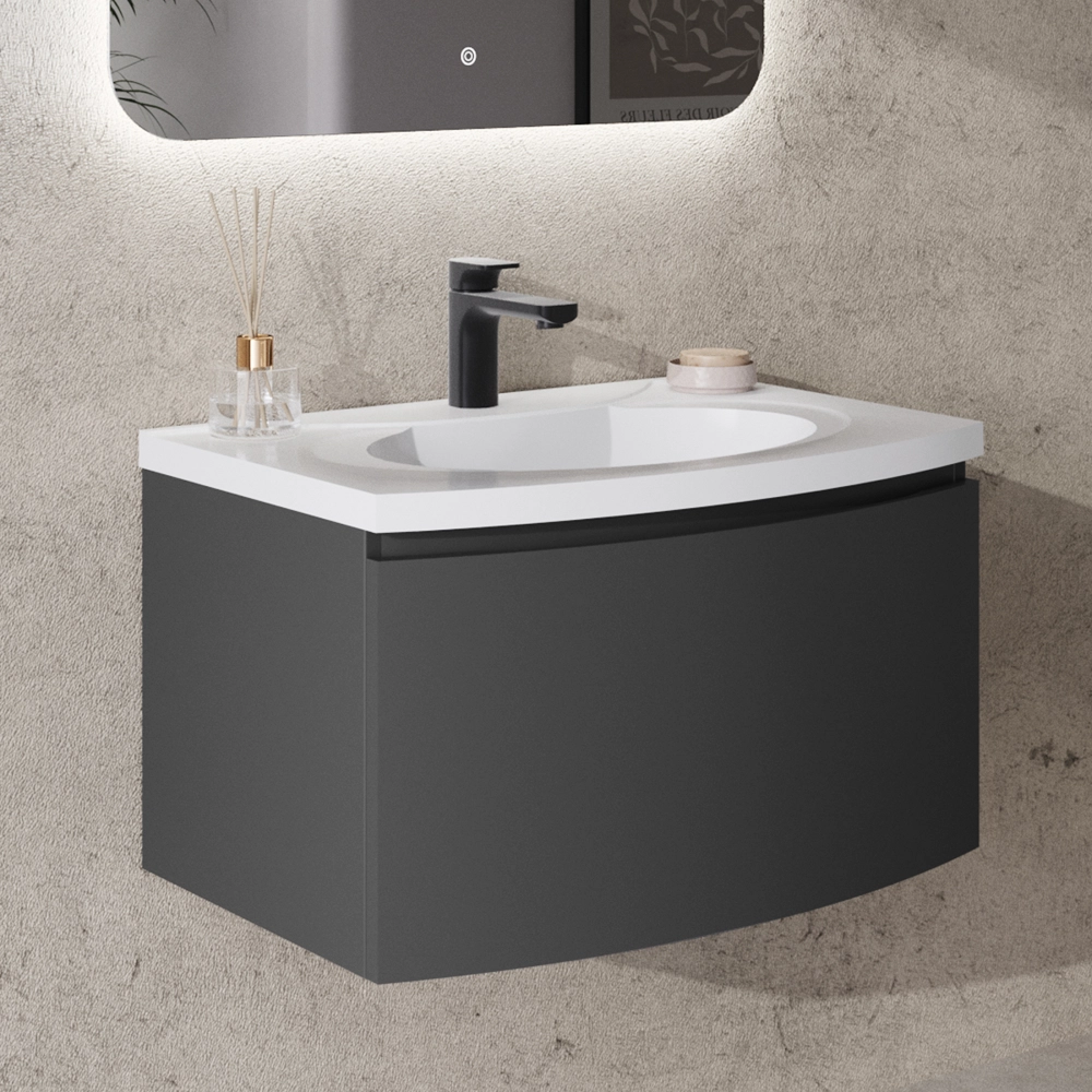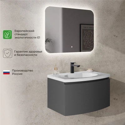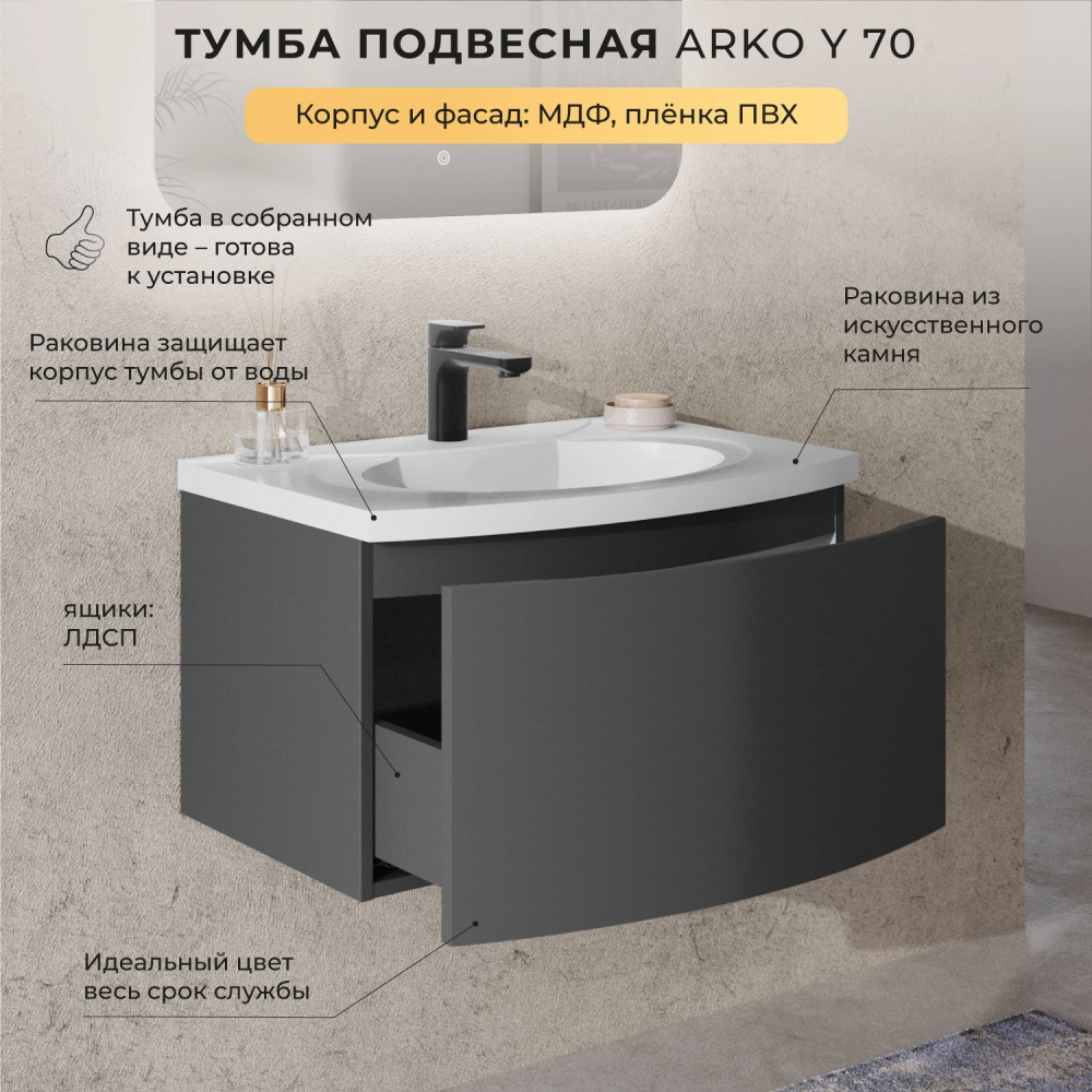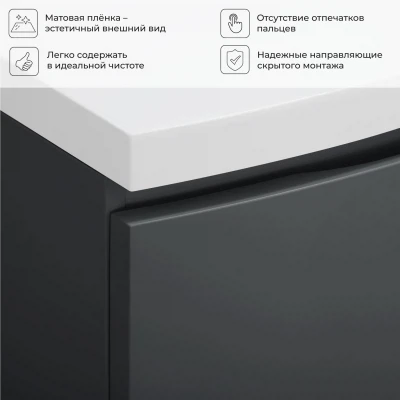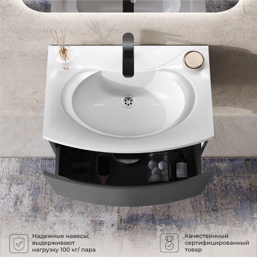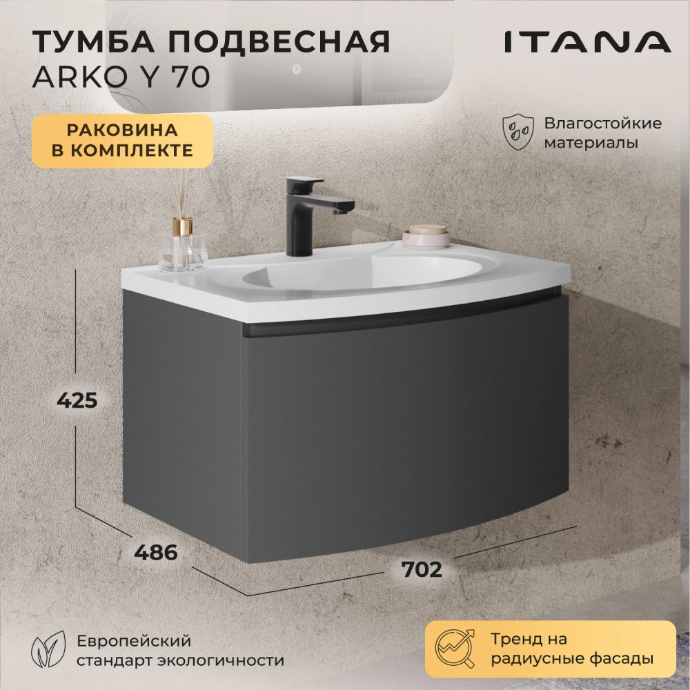 Тумба с раковиной подвесная Итана Arko Y 70 с радиусным фасадом Графит