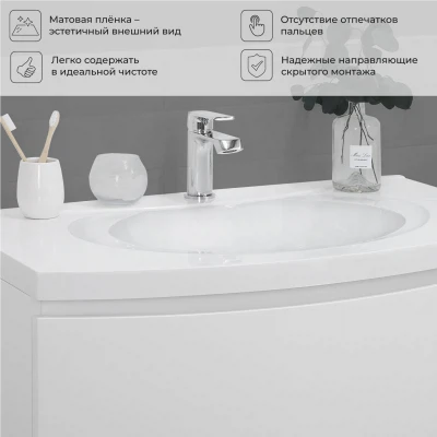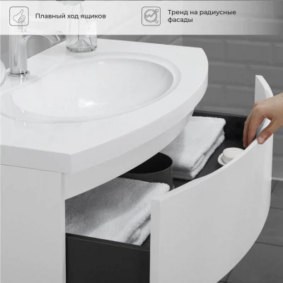 Подвесная тумба с раковиной Итана Arko 90 станет не только стильным акцентом для вашей ванной комнаты. Эстетически привлекательный дизайн с радиусными фасадами подчеркивает современный стиль интерьера. Благодаря подвесной конструкции, такая мебель значительно упрощает уборку, обеспечивая легкий доступ к полу. Тумба с раковиной в ванную изготовлена из высококачественных материалов, что гарантирует долгий срок службы и сохранность внешнего вида на протяжении многих лет. Продуманное до мелочей исполнение фасадов, мягкость линий и современный дизайн делают её отличным дополнением к любой ванной комнате. Качественная фурнитура с доводчиками обеспечивает легкое открывание и плавное закрывание ящиков. Тумба с раковиной с ящиками, где можно рационально распределить и разместить все необходимые вещи для ванной комнаты. Для точного выбора тумбы рекомендуем обратиться к схеме замеров, которая находится на фото в карточке товара. Размеры изделия могут отличаться +/-1 см в связи со спецификой производства. Подвесная тумба с раковиной приходит в надежной упаковке и в собранном виде.