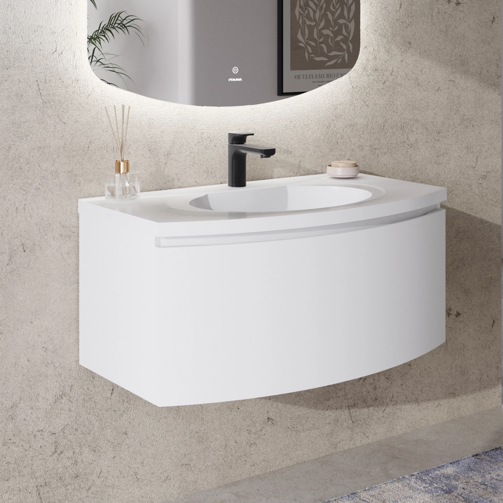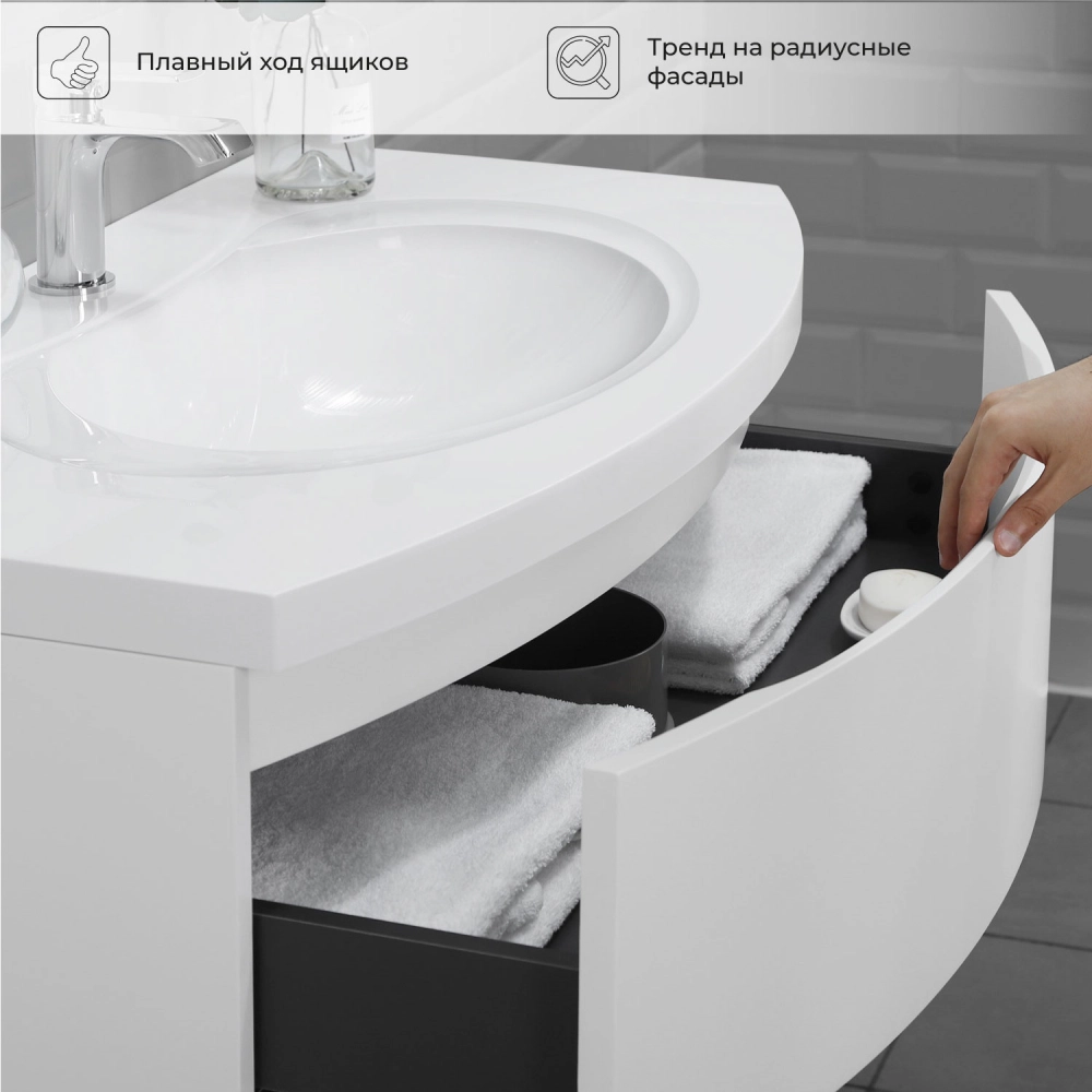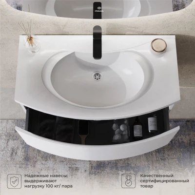 Тумба с раковиной подвесная Итана Arko Y 90 с радиусными фасадами Бланж