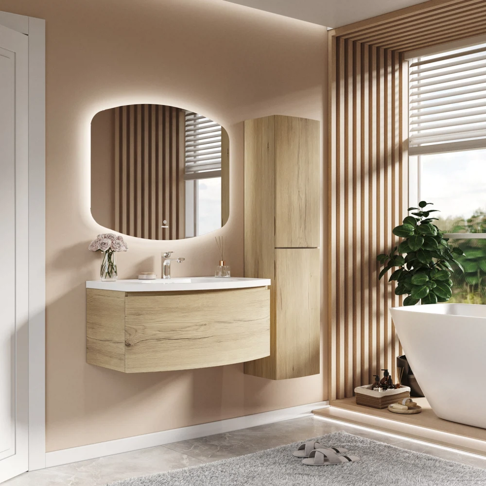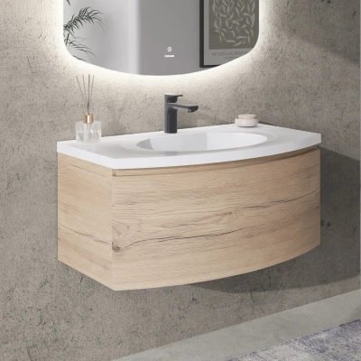 Тумба с раковиной подвесная Итана Arko Y 90 с радиусными фасадами Дуб Мавелла Голд