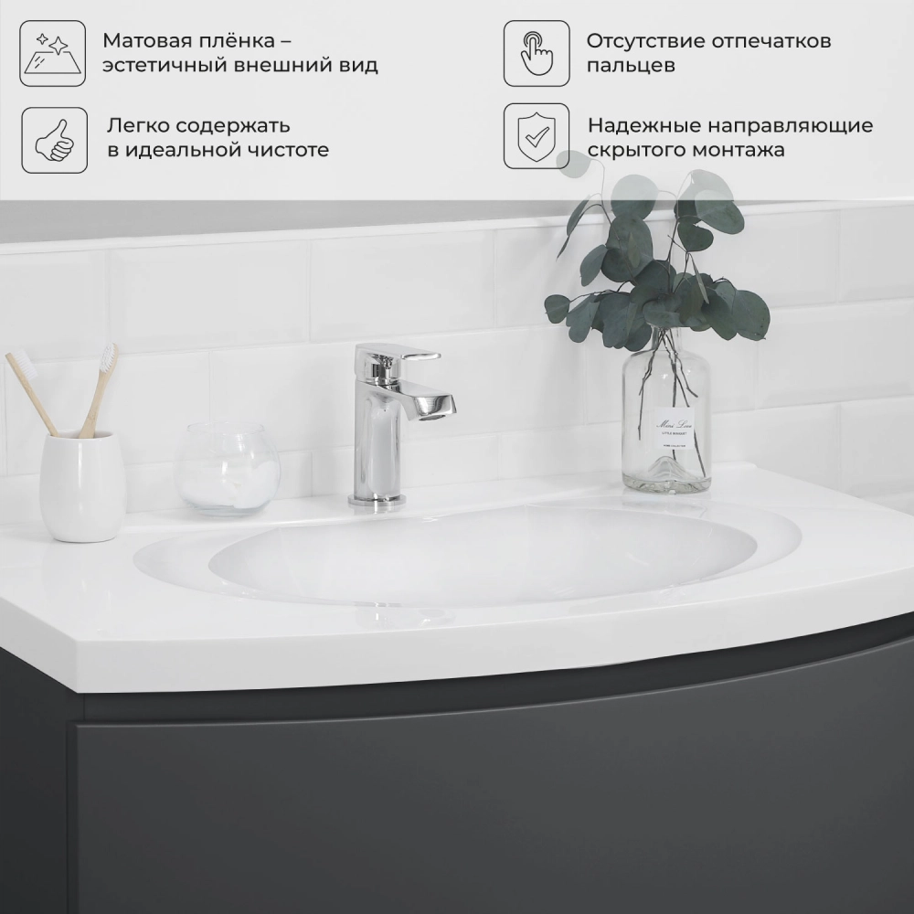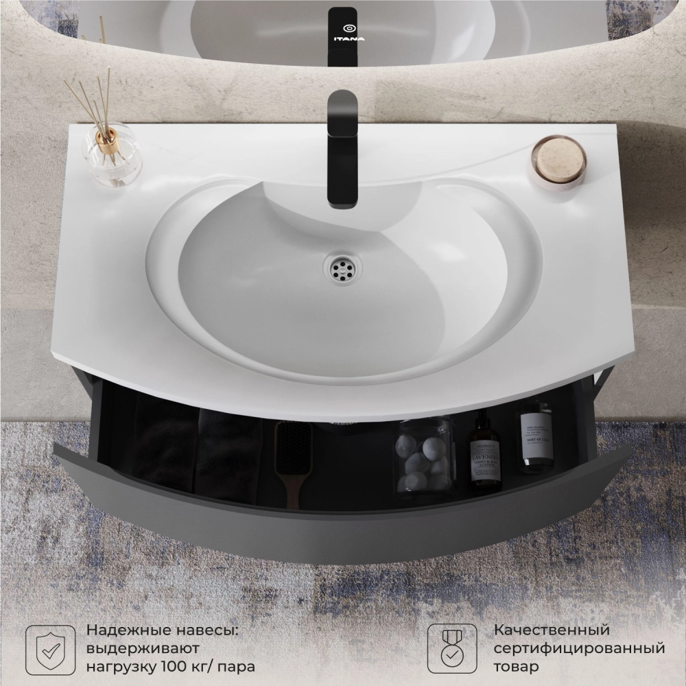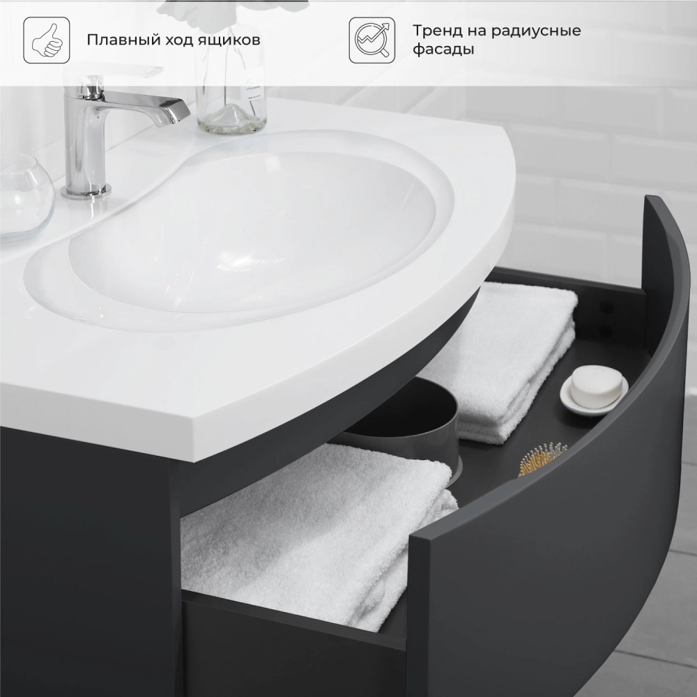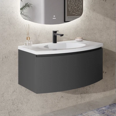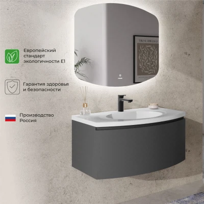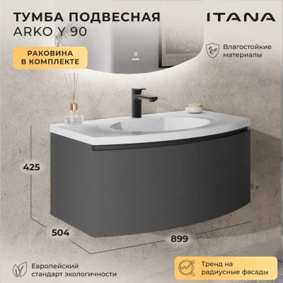 Тумба с раковиной подвесная Итана Arko Y 90 с радиусными фасадами Графит