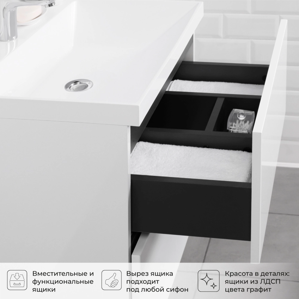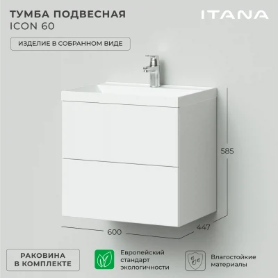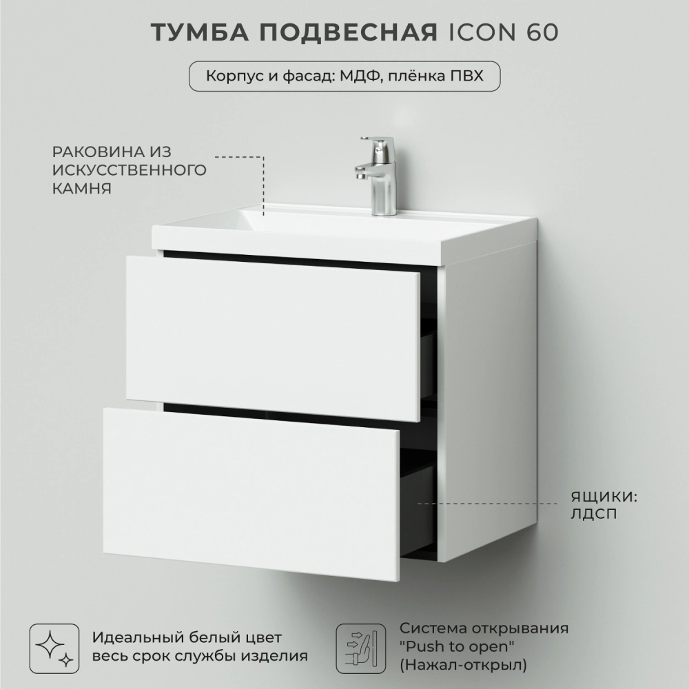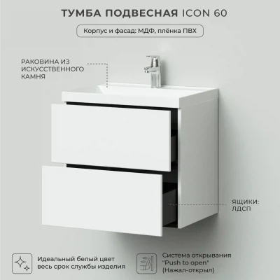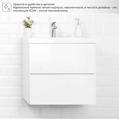 Тумба с раковиной подвесная Итана Icon 60 с выдвижными ящиками Белый глянец