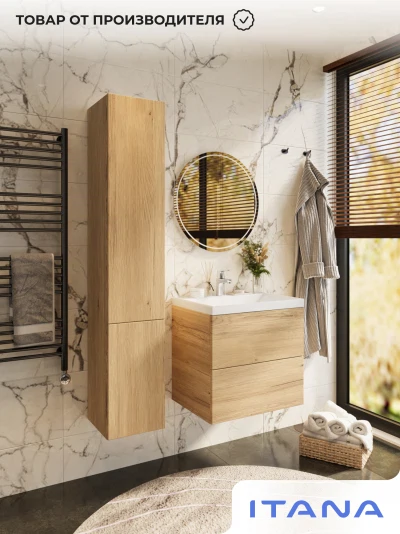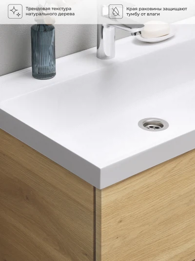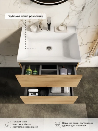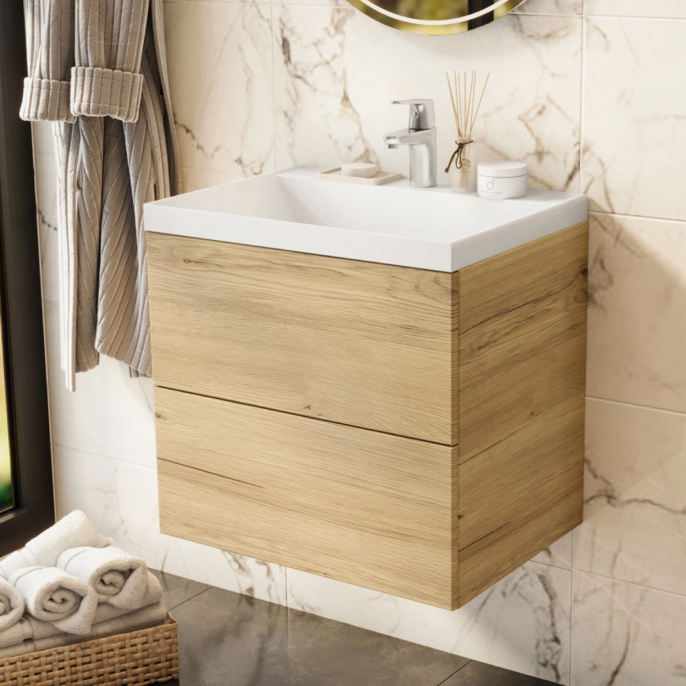 Тумба с раковиной подвесная Итана Icon 60 с выдвижными ящиками Дуб Мавелла Голд