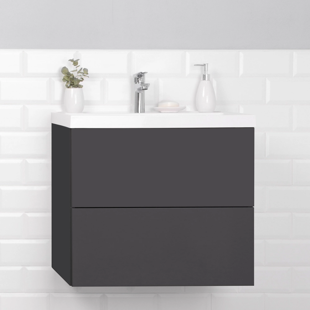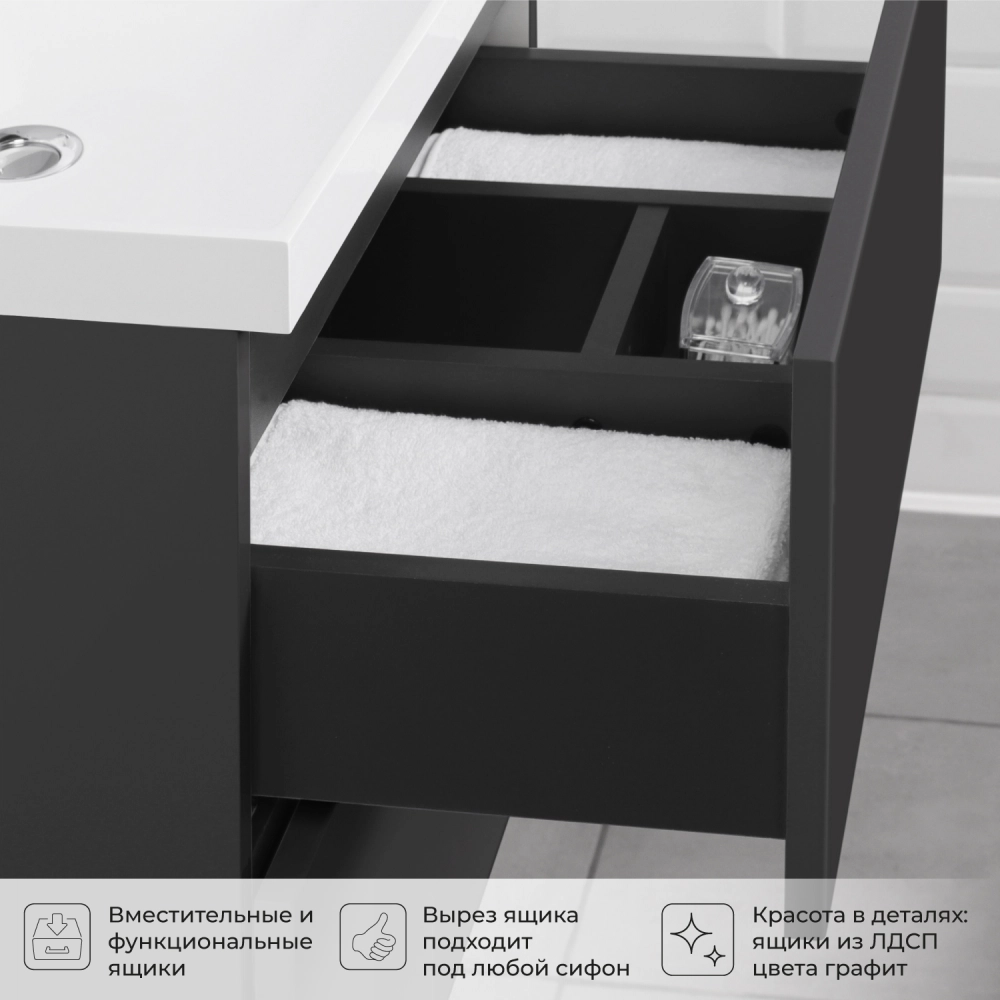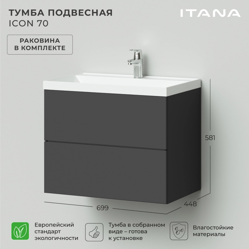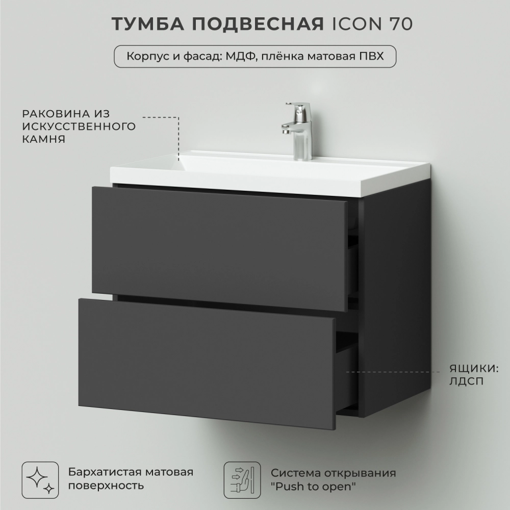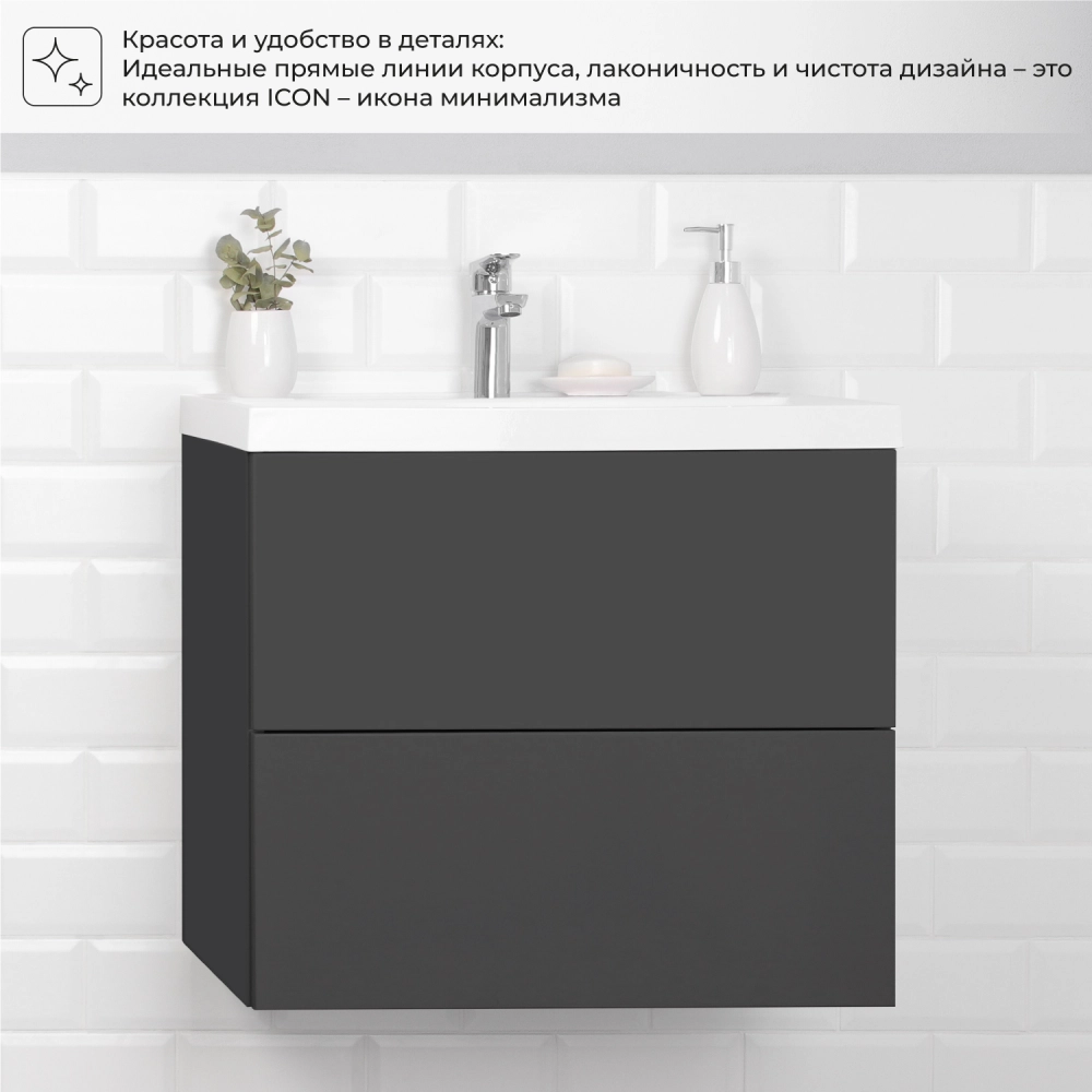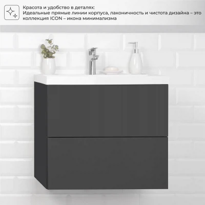 Тумба с раковиной подвесная Итана Icon 70 с выдвижными ящиками Графит