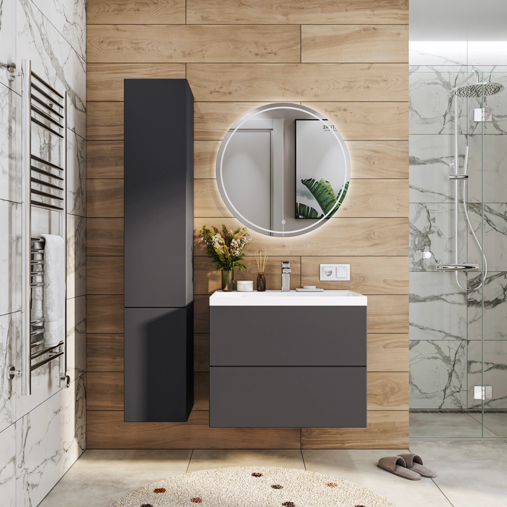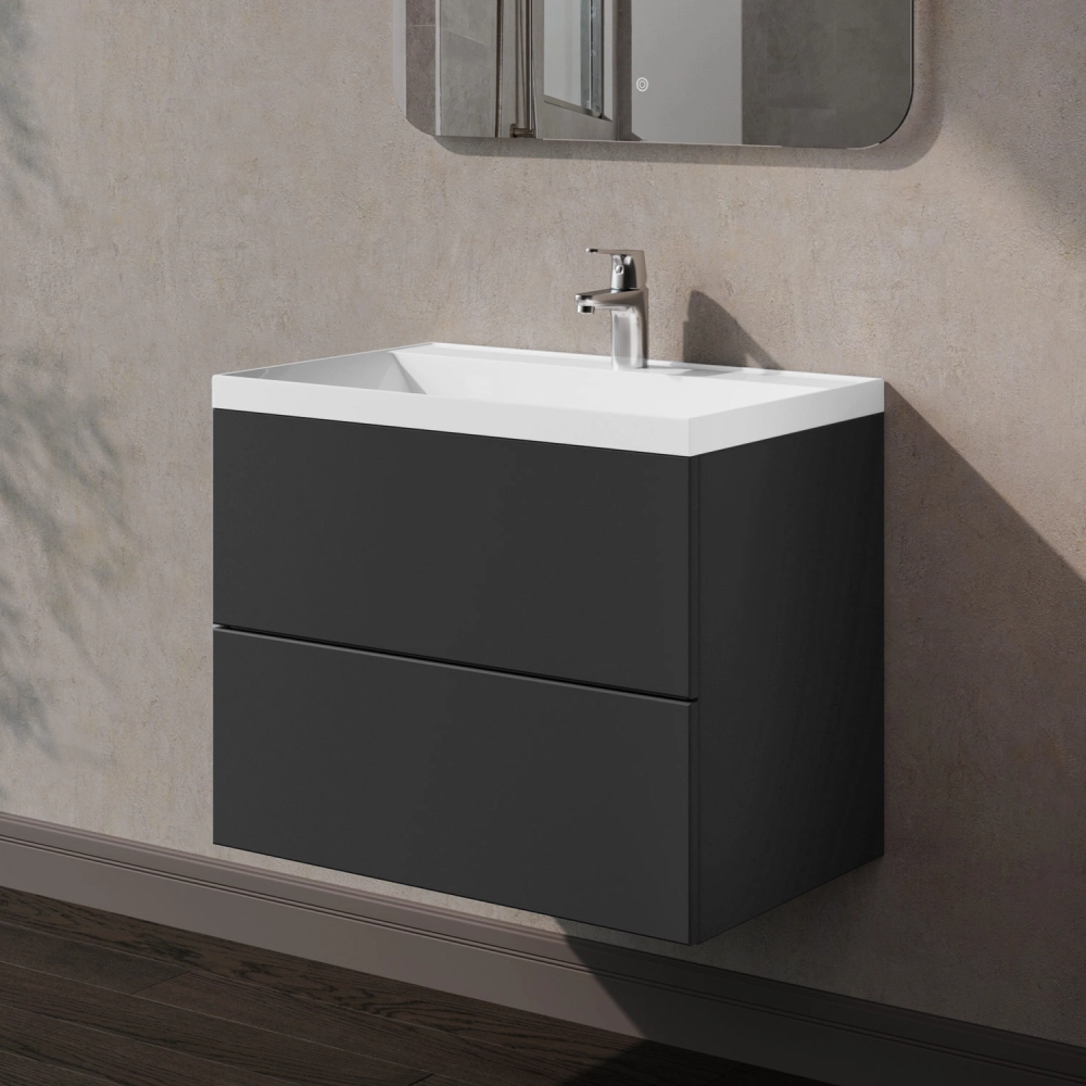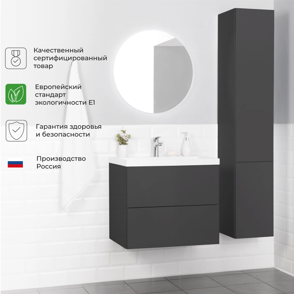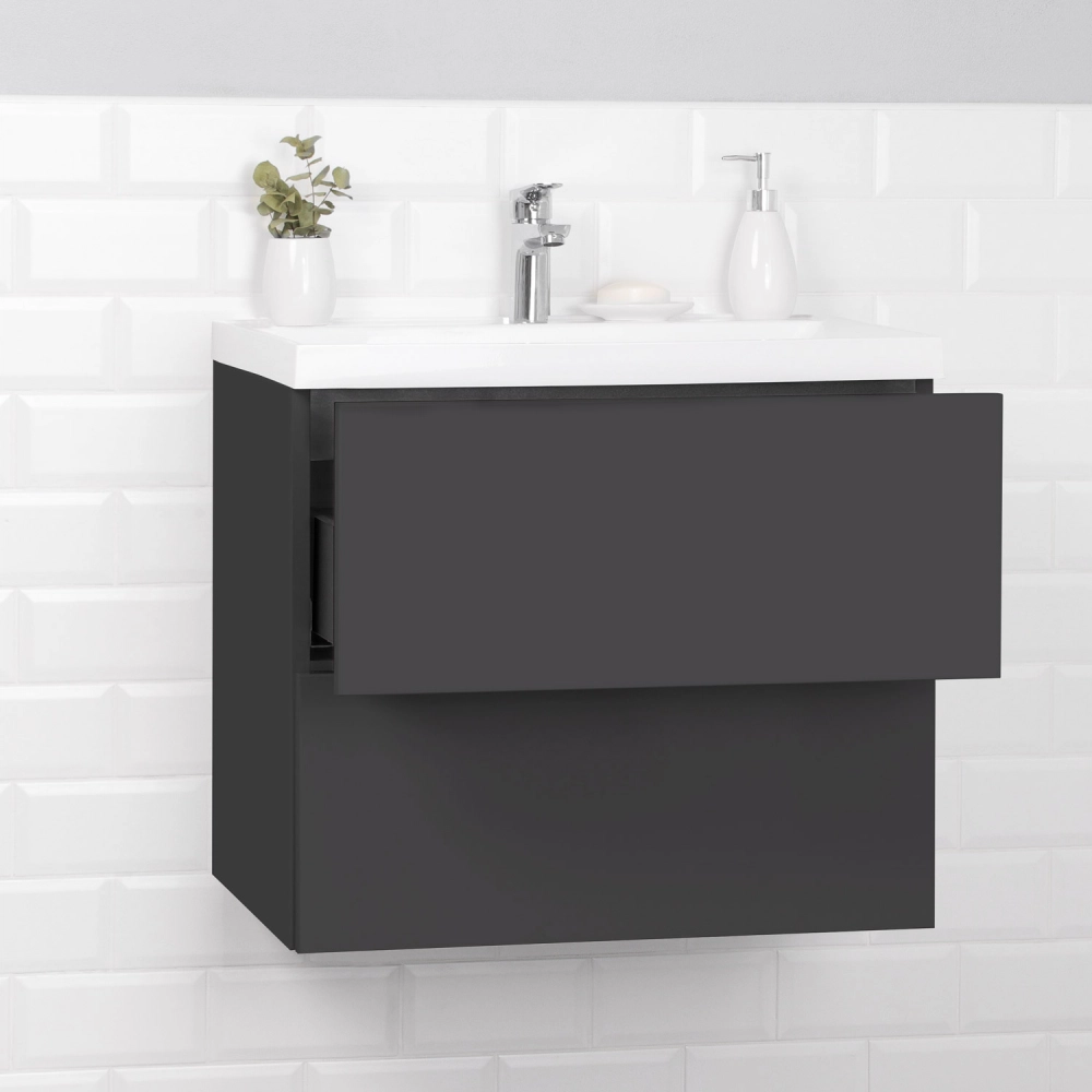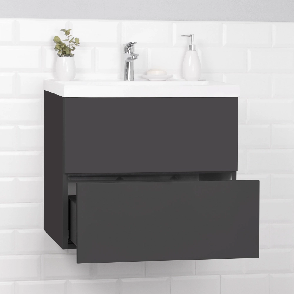 Тумба с раковиной подвесная Итана Icon 70 с выдвижными ящиками Графит