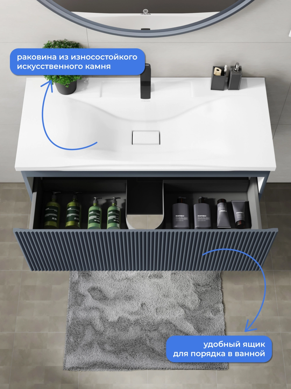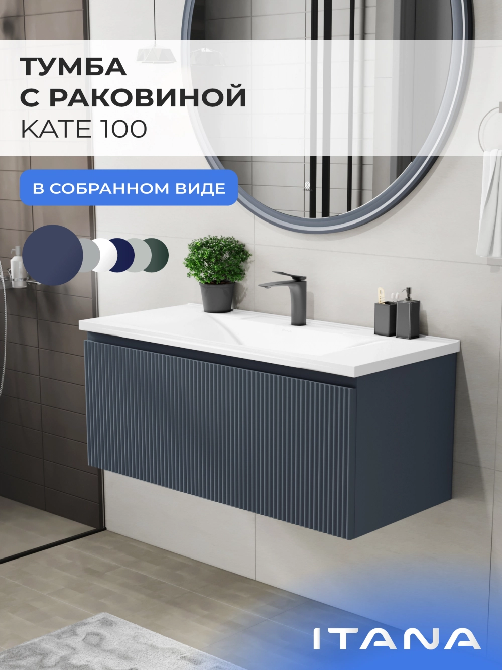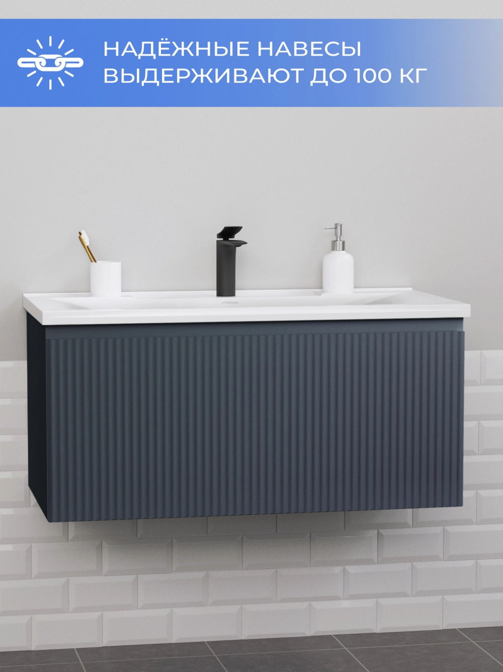 Подвесная тумба с раковиной Итана Kate 100 станет идеальным дополнением для вашей ванной комнаты, сочетая в себе стильный дизайн и функциональность. Коллекция Kate - воплотила в себе тренд на фактурные фасады. Идеальный "рубчик" - простое и стильное дизайнерское решение для декорирования фасадов - эта мебель бесспорно станет украшением современной ванной комнаты. Элегантная подвесная конструкция позволяет максимально эффективно использовать пространство, создавая ощущение легкости и визуальной свободы в интерьере. Тумба изготовлена из высококачественных материалов, гарантируя долговечность и надежность эксплуатации. Удобные фрезерованные ручки, качественная фурнитура с доводчиками, вместительность - мы продумали все, чтобы тумба под раковину была не просто красивой, но еще и функциональной, приятной в использовании. Ее конструкция позволяет легко поддерживать порядок в ванной, ведь все мелочи будут аккуратно убраны. Раковина выполнена из искусственного камня, обладает устойчивостью к механическим повреждениям и влиянию химических средств. Стильный декор тумбы с раковиной добавляет изюминку в общий дизайн, вписываясь в современные и классические интерьеры. Удобные выдвижные ящики обеспечивают простоту доступа к содержимому тумбы. Подвесная тумба для ванной Итана Kate 100 — это также безопасность и удобство в уборке, так как свободное пространство под ней позволяет легко очистить пол. Безупречное сочетание раковины с тумбой подчеркивает общий стиль вашей ванной комнаты, делая ее уютной и функциональной. Для точного выбора тумбочки с раковиной в ванную комнату рекомендуем обратиться к схеме замеров, которая находится на фото в карточке товара, размеры изделия могут отличаться +/-1 см в связи со спецификой производства. Тумба для ванной доставляется в предварительно собранном виде, надежно упакована.