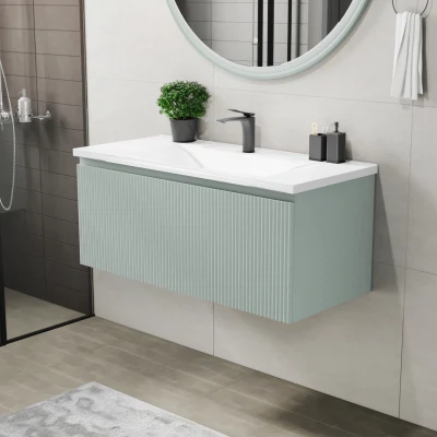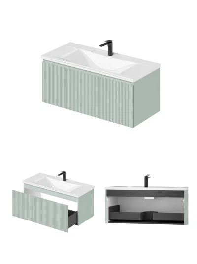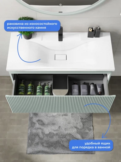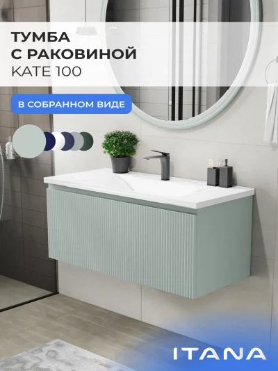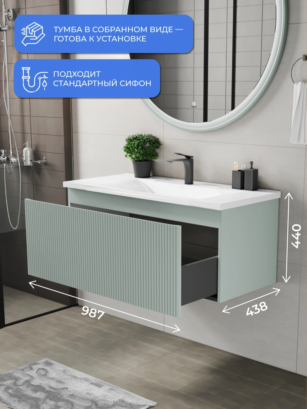Подвесная тумба с раковиной Итана Kate 100 станет идеальным дополнением для вашей ванной комнаты, сочетая в себе стильный дизайн и функциональность. Коллекция Kate - воплотила в себе тренд на фактурные фасады. Идеальный "рубчик" - простое и стильное дизайнерское решение для декорирования фасадов - эта мебель бесспорно станет украшением современной ванной комнаты. Элегантная подвесная конструкция позволяет максимально эффективно использовать пространство, создавая ощущение легкости и визуальной свободы в интерьере. Тумба изготовлена из высококачественных материалов, гарантируя долговечность и надежность эксплуатации. Удобные фрезерованные ручки, качественная фурнитура с доводчиками, вместительность - мы продумали все, чтобы тумба под раковину была не просто красивой, но еще и функциональной, приятной в использовании. Ее конструкция позволяет легко поддерживать порядок в ванной, ведь все мелочи будут аккуратно убраны. Раковина выполнена из искусственного камня, обладает устойчивостью к механическим повреждениям и влиянию химических средств. Стильный декор тумбы с раковиной добавляет изюминку в общий дизайн, вписываясь в современные и классические интерьеры. Удобные выдвижные ящики обеспечивают простоту доступа к содержимому тумбы. Подвесная тумба для ванной Итана Kate 100 — это также безопасность и удобство в уборке, так как свободное пространство под ней позволяет легко очистить пол. Безупречное сочетание раковины с тумбой подчеркивает общий стиль вашей ванной комнаты, делая ее уютной и функциональной. Для точного выбора тумбочки с раковиной в ванную комнату рекомендуем обратиться к схеме замеров, которая находится на фото в карточке товара, размеры изделия могут отличаться +/-1 см в связи со спецификой производства. Тумба для ванной доставляется в предварительно собранном виде, надежно упакована.