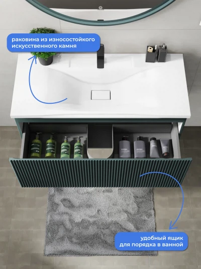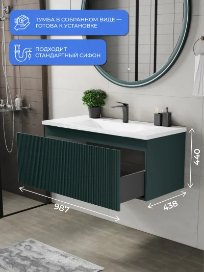 Тумба с раковиной подвесная Итана Kate 100 с выдвижным ящиком Веллюто Авокадо