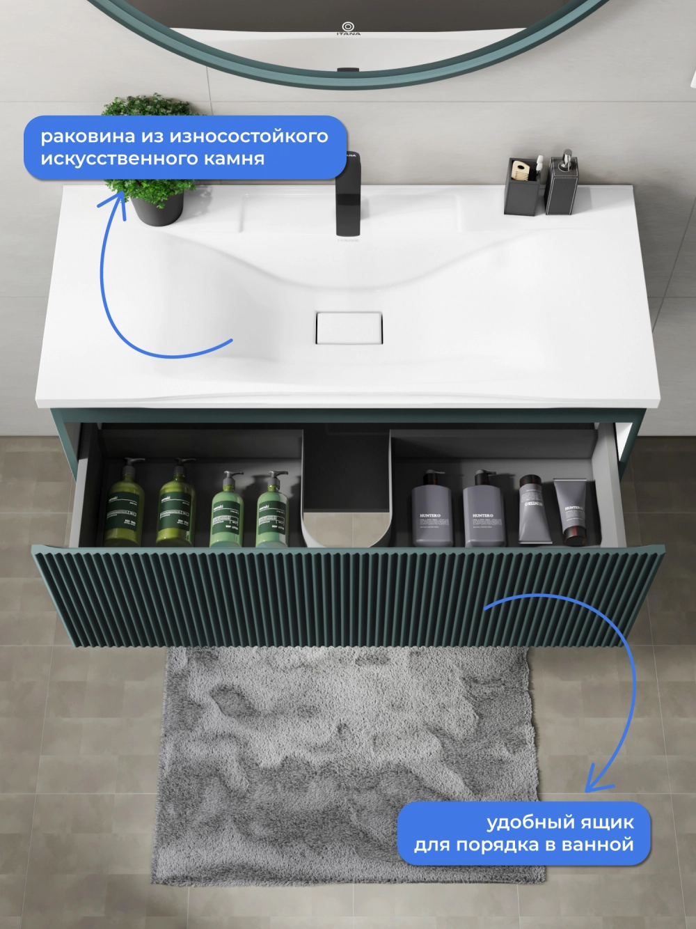 Подвесная тумба с раковиной Итана Kate 100 станет идеальным дополнением для вашей ванной комнаты, сочетая в себе стильный дизайн и функциональность. Коллекция Kate - воплотила в себе тренд на фактурные фасады. Идеальный "рубчик" - простое и стильное дизайнерское решение для декорирования фасадов - эта мебель бесспорно станет украшением современной ванной комнаты. Элегантная подвесная конструкция позволяет максимально эффективно использовать пространство, создавая ощущение легкости и визуальной свободы в интерьере. Тумба изготовлена из высококачественных материалов, гарантируя долговечность и надежность эксплуатации. Удобные фрезерованные ручки, качественная фурнитура с доводчиками, вместительность - мы продумали все, чтобы тумба под раковину была не просто красивой, но еще и функциональной, приятной в использовании. Ее конструкция позволяет легко поддерживать порядок в ванной, ведь все мелочи будут аккуратно убраны. Раковина выполнена из искусственного камня, обладает устойчивостью к механическим повреждениям и влиянию химических средств. Стильный декор тумбы с раковиной добавляет изюминку в общий дизайн, вписываясь в современные и классические интерьеры. Удобные выдвижные ящики обеспечивают простоту доступа к содержимому тумбы. Подвесная тумба для ванной Итана Kate 100 — это также безопасность и удобство в уборке, так как свободное пространство под ней позволяет легко очистить пол. Безупречное сочетание раковины с тумбой подчеркивает общий стиль вашей ванной комнаты, делая ее уютной и функциональной. Для точного выбора тумбочки с раковиной в ванную комнату рекомендуем обратиться к схеме замеров, которая находится на фото в карточке товара, размеры изделия могут отличаться +/-1 см в связи со спецификой производства. Тумба для ванной доставляется в предварительно собранном виде, надежно упакована.