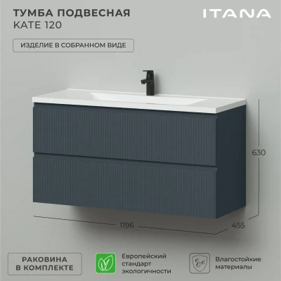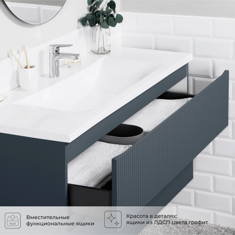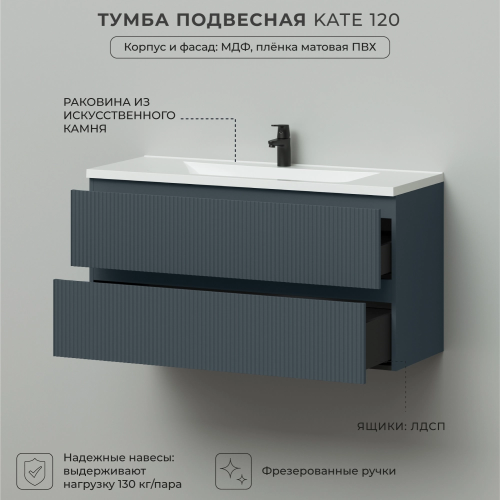 Тумба с раковиной подвесная Итана Kate 120 с выдвижными ящиками Антрацит