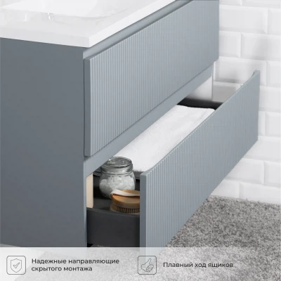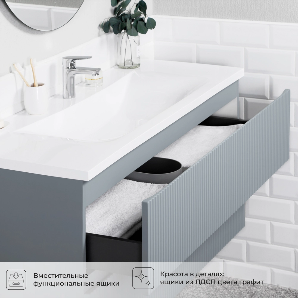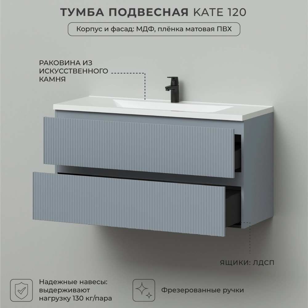 Подвесная тумба с раковиной из коллекции Kate станет настоящим украшением ванной комнаты в современном стиле. Навесной способ установки тумбы в ванную дает возможность не только визуально увеличить пространство, но и обеспечивает быстрый и удобный доступ для уборки. Размеры подвесной тумбы с раковиной 1196*455*630 - идеальный выбор для ванной комнаты или туалета. Тумба для ванны изготовлена из МДФ и покрыта ПВХ пленкой, поэтому выдерживает высокие эксплуатационные нагрузки. Качественная фурнитура с доводчиками обеспечивает легкое открывание и плавное закрывание ящиков. Вырез под сифон универсальный, для любого типа. Благодаря своей конструкции тумба обеспечивает удобный доступ к раковине и позволяет скрыть коммуникации. Тумба с раковиной в ванную оснащена двумя удобными ящиками для хранения, что позволяет разместить всё необходимое под рукой. Раковина из искусственого камня– это безупречная гладкость поверхности, на которой не задерживаются загрязнения. Для точного выбора тумбы с раковиной в ванную комнату рекомендуем обратиться к схеме замеров, которая находится на фото в карточке товара, размеры изделия могут отличаться +/-1 см в связи со спецификой производства. Тумба для ванной доставляется в предварительно собранном виде, надежно упакована.