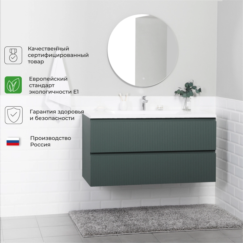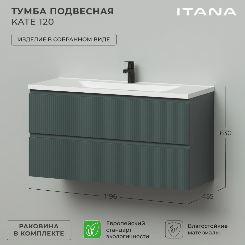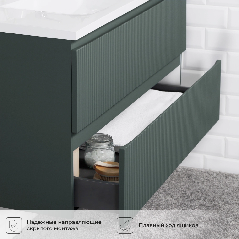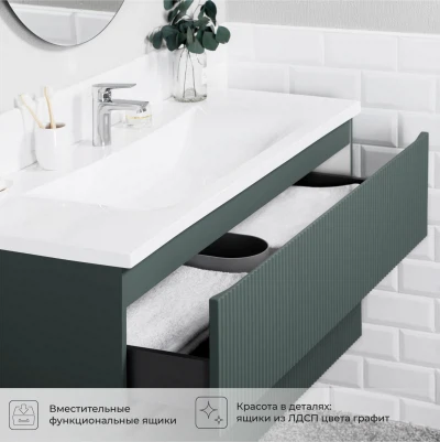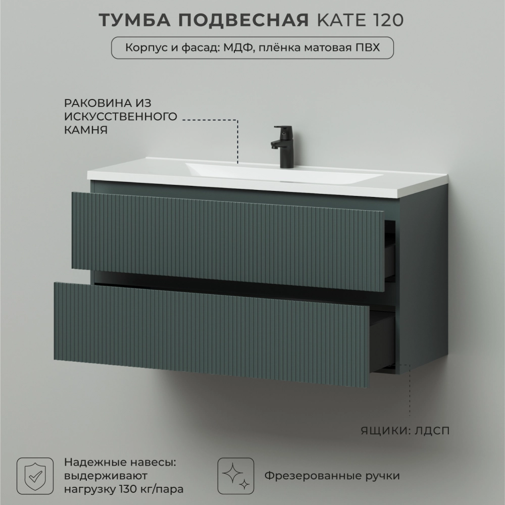 Тумба с раковиной подвесная Итана Kate 120 с выдвижными ящиками Велютто Авокадо