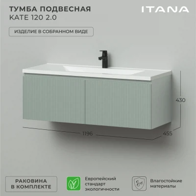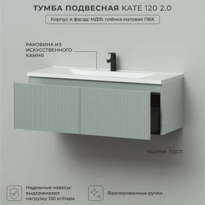 Тумба с раковиной подвесная Итана Kate 2.0 120 с выдвижными ящиками Токио