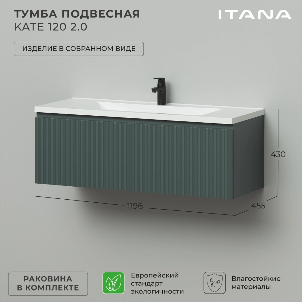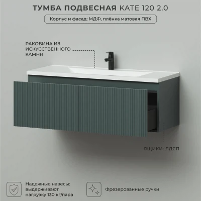 Тумба с раковиной подвесная Итана Kate 2.0 120 с выдвижными ящиками Велютто Авокадо