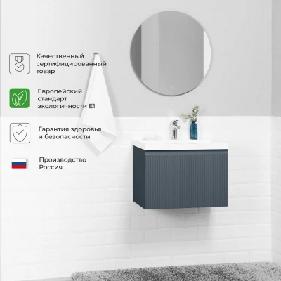 Подвесная тумба с раковиной из коллекции Kate станет настоящим украшением ванной комнаты в современном стиле. Навесной способ установки тумбы в ванную дает возможность не только визуально увеличить пространство, но и обеспечивает быстрый и удобный доступ для уборки. Размеры подвесной тумбы с раковиной 602*377*440 - идеальный выбор для ванной комнаты или туалета. Тумба для ванны изготовлена из МДФ и покрыта ПВХ пленкой, поэтому выдерживает высокие эксплуатационные нагрузки. Качественная фурнитура с доводчиками обеспечивает легкое открывание и плавное закрывание ящиков. Вырез под сифон универсальный, для любого типа. Благодаря своей конструкции тумба обеспечивает удобный доступ к раковине и позволяет скрыть коммуникации. Тумба с раковиной в ванную оснащена удобным ящиком для хранения, что позволяет разместить всё необходимое под рукой. Раковина из искусственого камня– это безупречная гладкость поверхности, на которой не задерживаются загрязнения. Для точного выбора тумбы с раковиной в ванную комнату рекомендуем обратиться к схеме замеров, которая находится на фото в карточке товара, размеры изделия могут отличаться +/-1 см в связи со спецификой производства. Тумба для ванной доставляется в предварительно собранном виде, надежно упакована.