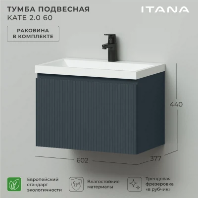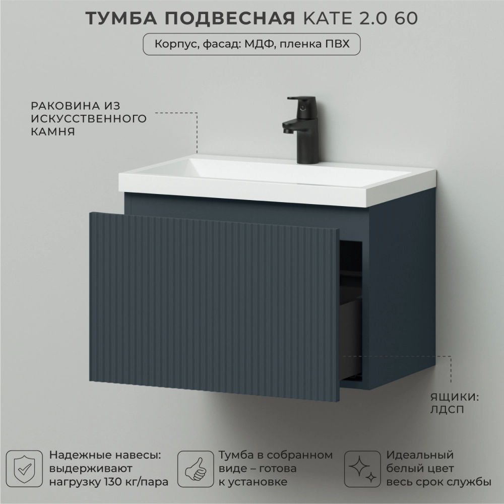 Тумба с раковиной подвесная Итана Kate 2.0 60 с выдвижным ящиком Антрацит