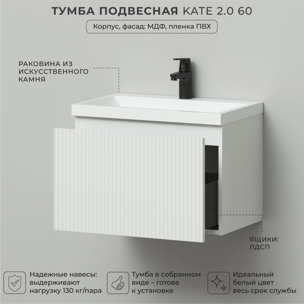 Тумба с раковиной подвесная Итана Kate 2.0 60 с выдвижным ящиком Бланж