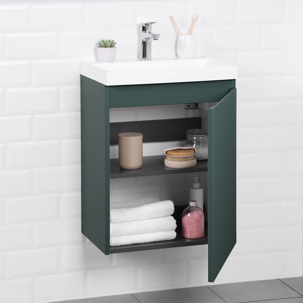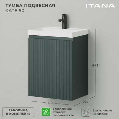 Тумба с раковиной подвесная Итана Kate 50 с распашной дверцей правая Велютто Авокадо