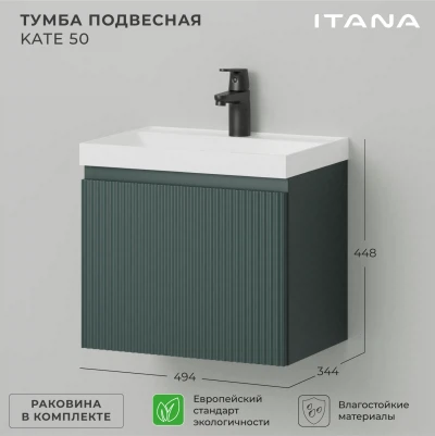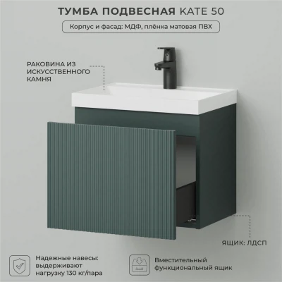 Тумба с раковиной подвесная Итана Kate 50 с выдвижным ящиком Велютто Авокадо
