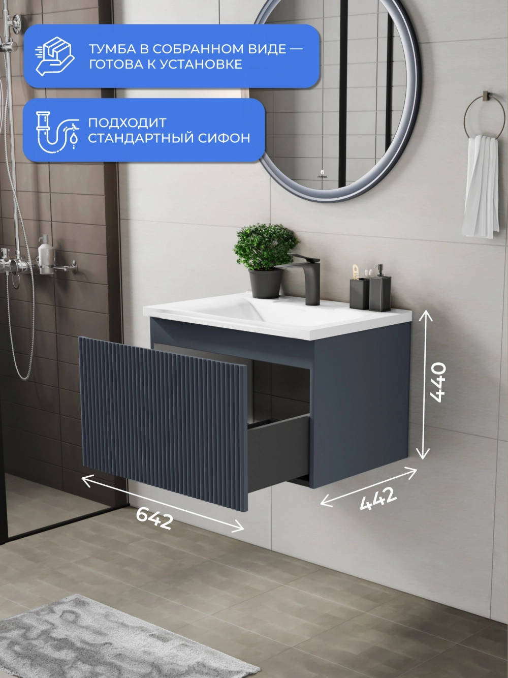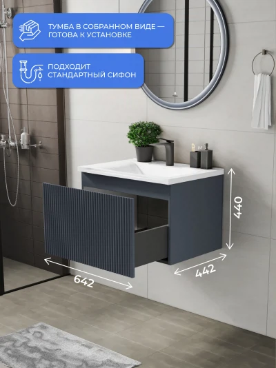 Тумба с раковиной подвесная Итана Kate 65 с выдвижным ящиком Антрацит