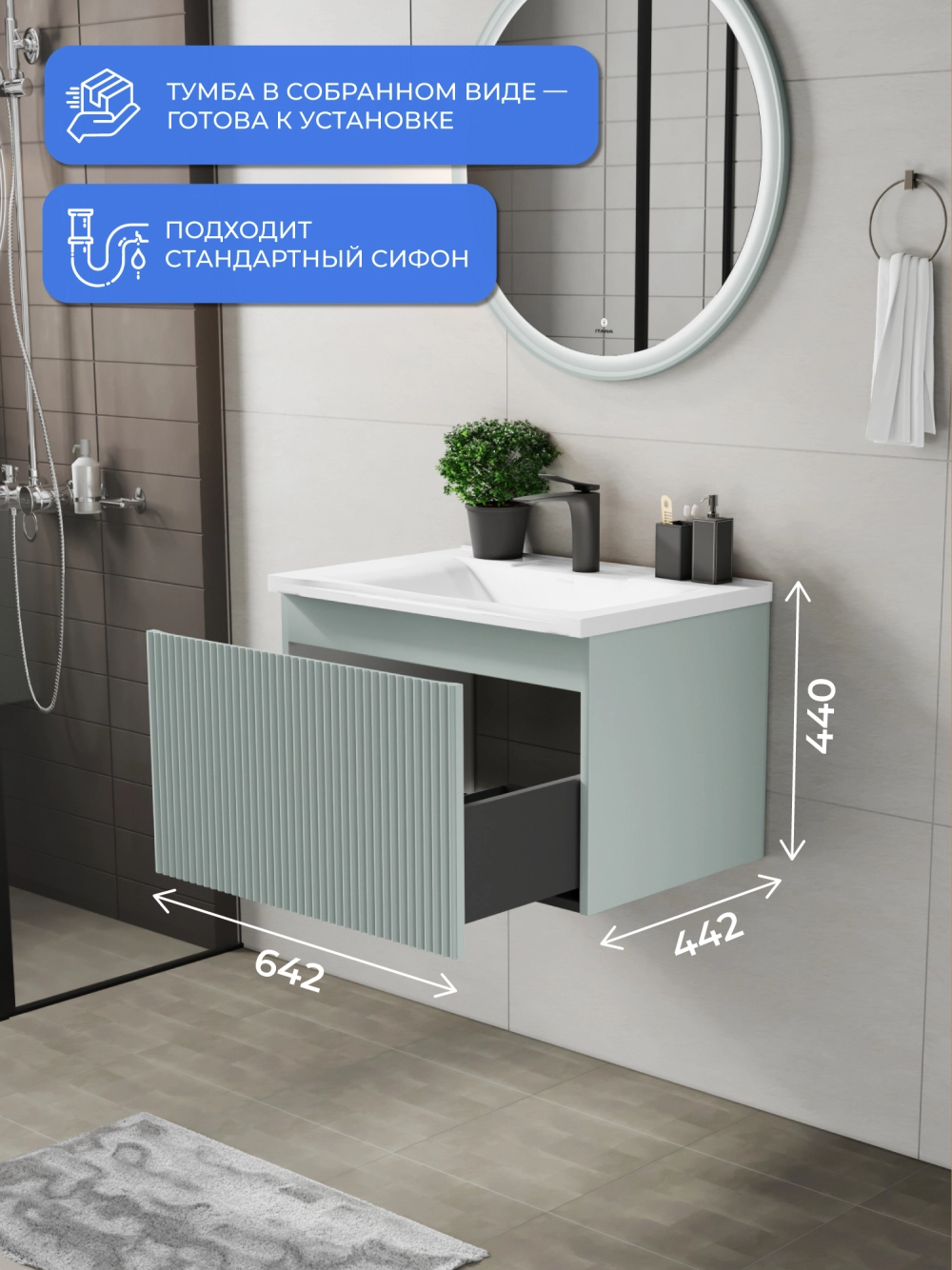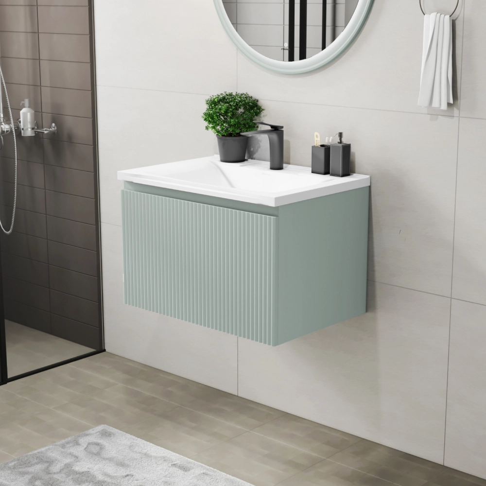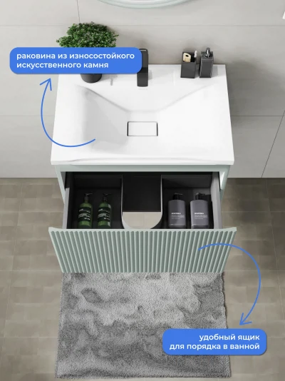 Подвесная тумба с раковиной Итана Kate 65 станет идеальным дополнением для вашей ванной комнаты, сочетая в себе стильный дизайн и функциональность. Коллекция Kate - воплотила в себе тренд на фактурные фасады. Идеальный "рубчик" - простое и стильное дизайнерское решение для декорирования фасадов - эта мебель бесспорно станет украшением современной ванной комнаты. Элегантная подвесная конструкция позволяет максимально эффективно использовать пространство, создавая ощущение легкости и визуальной свободы в интерьере. Тумба изготовлена из высококачественных материалов, гарантируя долговечность и надежность эксплуатации. Удобные фрезерованные ручки, качественная фурнитура с доводчиками, вместительность - мы продумали все, чтобы тумба под раковину была не просто красивой, но еще и функциональной, приятной в использовании. Ее конструкция позволяет легко поддерживать порядок в ванной, ведь все мелочи будут аккуратно убраны. Раковина выполнена из искусственного камня, обладает устойчивостью к механическим повреждениям и влиянию химических средств. Стильный декор тумбы с раковиной добавляет изюминку в общий дизайн, вписываясь в современные и классические интерьеры. Удобные выдвижные ящики обеспечивают простоту доступа к содержимому тумбы. Подвесная тумба для ванной Итана Kate 65 — это также безопасность и удобство в уборке, так как свободное пространство под ней позволяет легко очистить пол. Безупречное сочетание раковины с тумбой подчеркивает общий стиль вашей ванной комнаты, делая ее уютной и функциональной. Для точного выбора тумбочки с раковиной в ванную комнату рекомендуем обратиться к схеме замеров, которая находится на фото в карточке товара, размеры изделия могут отличаться +/-1 см в связи со спецификой производства. Тумба для ванной доставляется в предварительно собранном виде, надежно упакована.