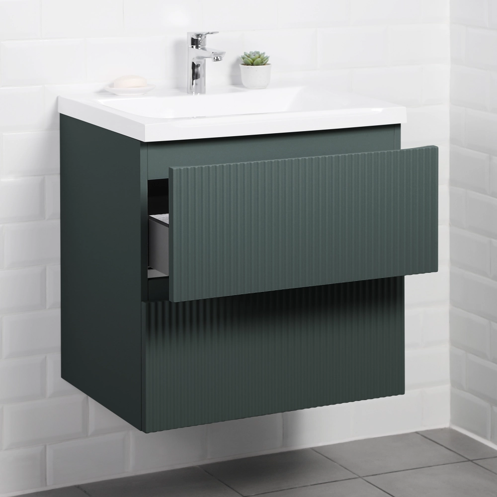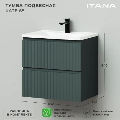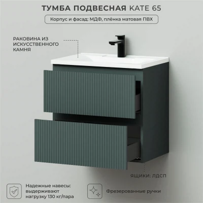 Тумба с раковиной подвесная Итана Kate 65 с выдвижными ящиками Велютто Авокадо