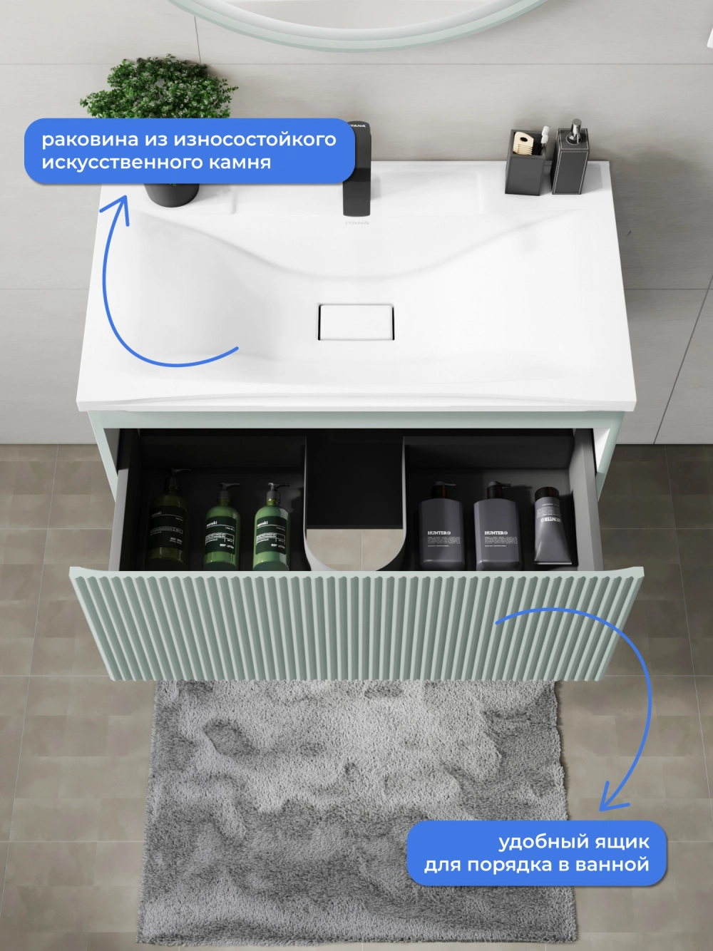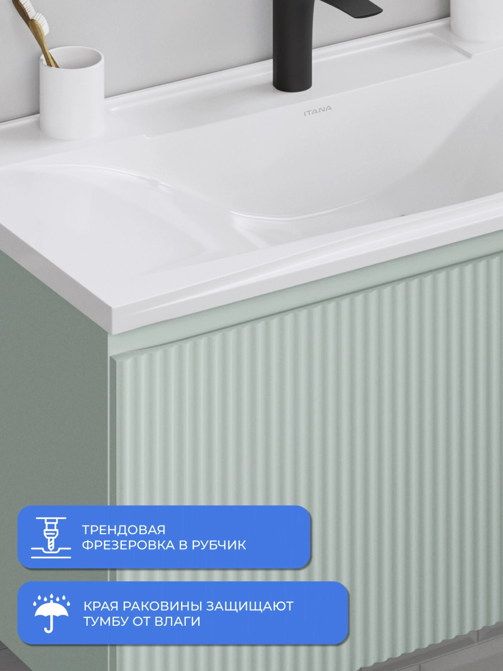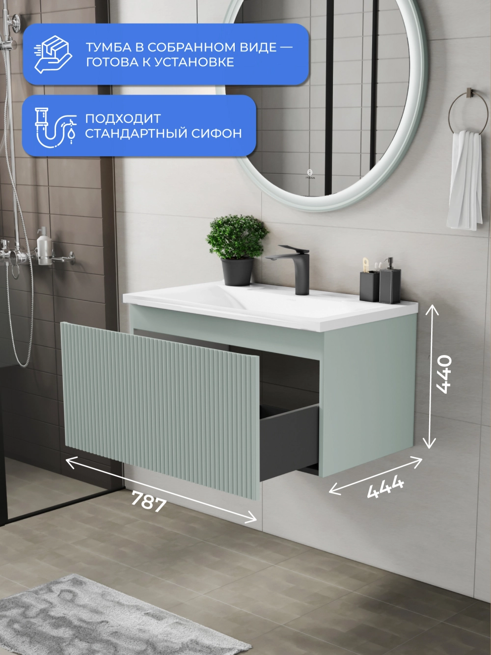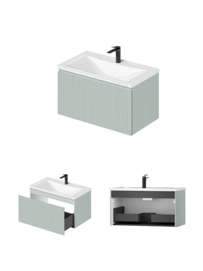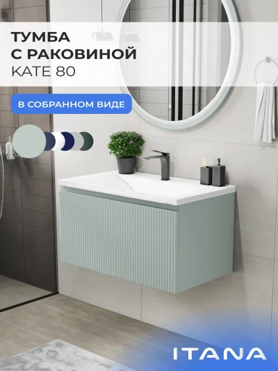 Подвесная тумба с раковиной Итана Kate 80 станет идеальным дополнением для вашей ванной комнаты, сочетая в себе стильный дизайн и функциональность. Коллекция Kate - воплотила в себе тренд на фактурные фасады. Идеальный "рубчик" - простое и стильное дизайнерское решение для декорирования фасадов - эта мебель бесспорно станет украшением современной ванной комнаты. Элегантная подвесная конструкция позволяет максимально эффективно использовать пространство, создавая ощущение легкости и визуальной свободы в интерьере. Тумба изготовлена из высококачественных материалов, гарантируя долговечность и надежность эксплуатации. Удобные фрезерованные ручки, качественная фурнитура с доводчиками, вместительность - мы продумали все, чтобы тумба под раковину была не просто красивой, но еще и функциональной, приятной в использовании. Ее конструкция позволяет легко поддерживать порядок в ванной, ведь все мелочи будут аккуратно убраны. Раковина выполнена из искусственного камня, обладает устойчивостью к механическим повреждениям и влиянию химических средств. Стильный декор тумбы с раковиной добавляет изюминку в общий дизайн, вписываясь в современные и классические интерьеры. Удобные выдвижные ящики обеспечивают простоту доступа к содержимому тумбы. Подвесная тумба для ванной Итана Kate 80 — это также безопасность и удобство в уборке, так как свободное пространство под ней позволяет легко очистить пол. Безупречное сочетание раковины с тумбой подчеркивает общий стиль вашей ванной комнаты, делая ее уютной и функциональной. Для точного выбора тумбочки с раковиной в ванную комнату рекомендуем обратиться к схеме замеров, которая находится на фото в карточке товара, размеры изделия могут отличаться +/-1 см в связи со спецификой производства. Тумба для ванной доставляется в предварительно собранном виде, надежно упакована.