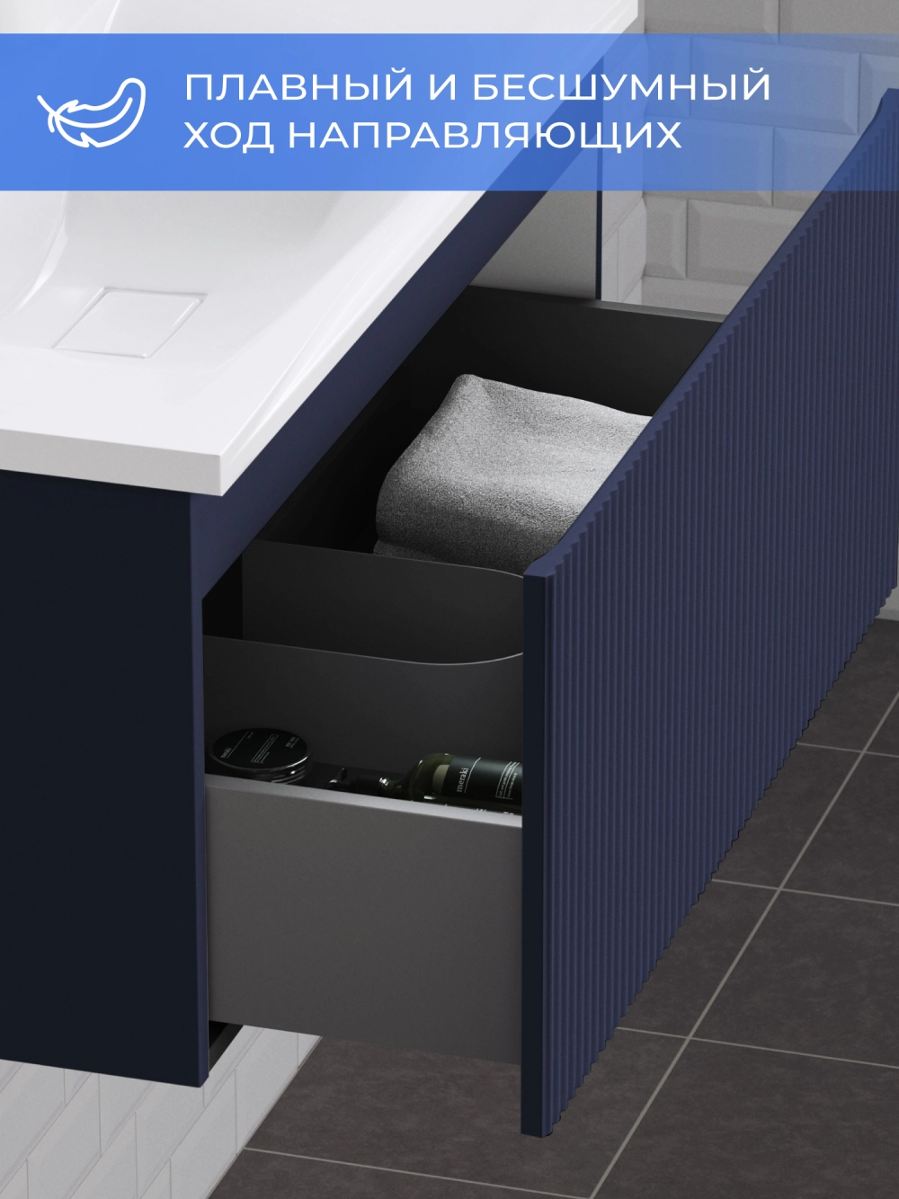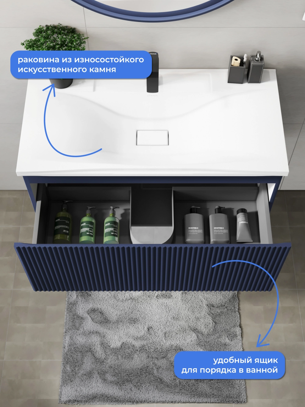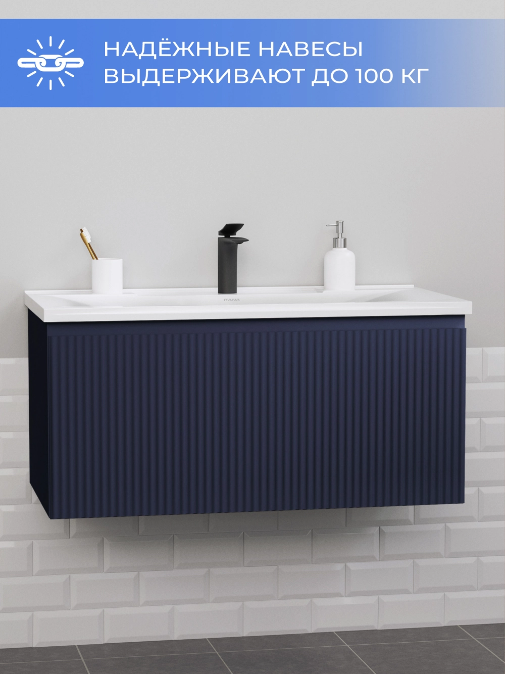 Подвесная тумба с раковиной Итана Kate 90 станет идеальным дополнением для вашей ванной комнаты, сочетая в себе стильный дизайн и функциональность. Коллекция Kate - воплотила в себе тренд на фактурные фасады. Идеальный "рубчик" - простое и стильное дизайнерское решение для декорирования фасадов - эта мебель бесспорно станет украшением современной ванной комнаты. Элегантная подвесная конструкция позволяет максимально эффективно использовать пространство, создавая ощущение легкости и визуальной свободы в интерьере. Тумба изготовлена из высококачественных материалов, гарантируя долговечность и надежность эксплуатации. Удобные фрезерованные ручки, качественная фурнитура с доводчиками, вместительность - мы продумали все, чтобы тумба под раковину была не просто красивой, но еще и функциональной, приятной в использовании. Ее конструкция позволяет легко поддерживать порядок в ванной, ведь все мелочи будут аккуратно убраны. Раковина выполнена из искусственного камня, обладает устойчивостью к механическим повреждениям и влиянию химических средств. Стильный декор тумбы с раковиной добавляет изюминку в общий дизайн, вписываясь в современные и классические интерьеры. Удобные выдвижные ящики обеспечивают простоту доступа к содержимому тумбы. Подвесная тумба для ванной Итана Kate 90 — это также безопасность и удобство в уборке, так как свободное пространство под ней позволяет легко очистить пол. Безупречное сочетание раковины с тумбой подчеркивает общий стиль вашей ванной комнаты, делая ее уютной и функциональной. Для точного выбора тумбочки с раковиной в ванную комнату рекомендуем обратиться к схеме замеров, которая находится на фото в карточке товара, размеры изделия могут отличаться +/-1 см в связи со спецификой производства. Тумба для ванной доставляется в предварительно собранном виде, надежно упакована.