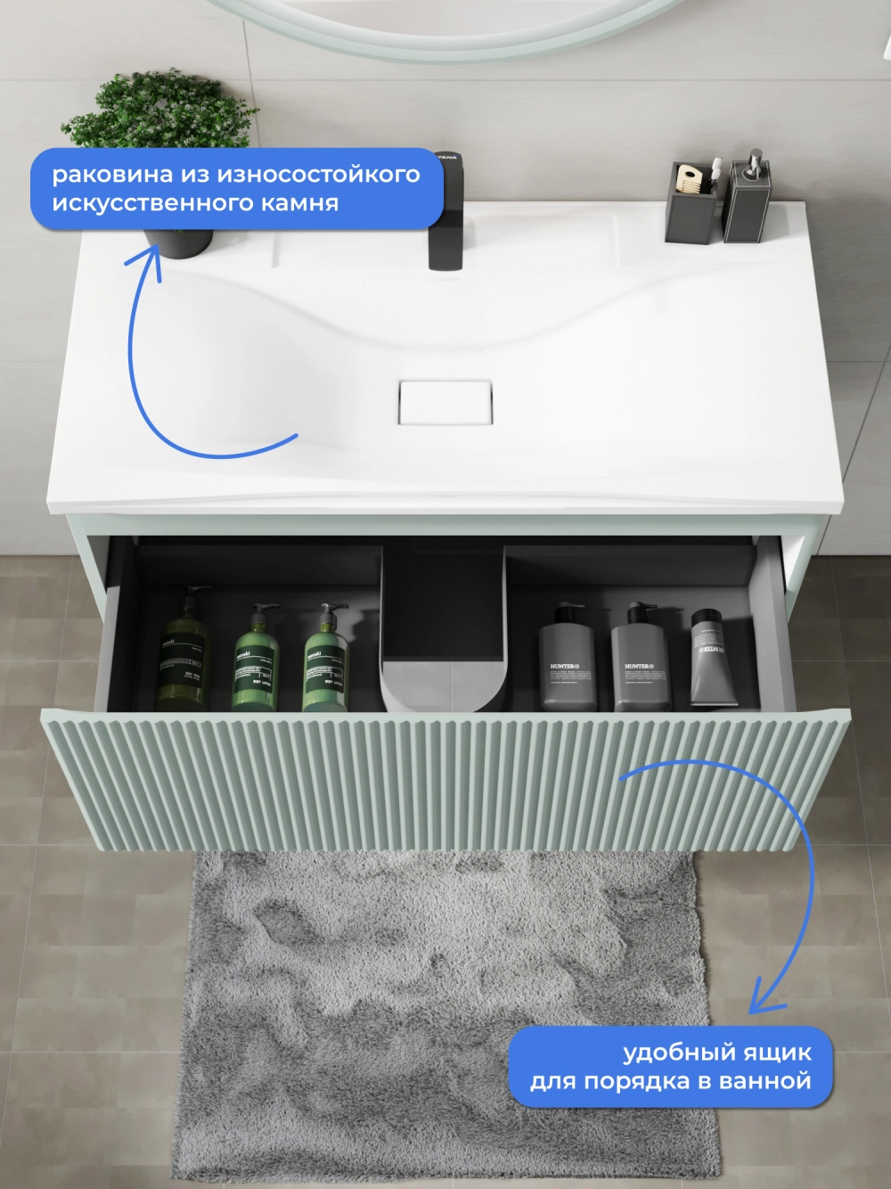Подвесная тумба с раковиной Итана Kate 90 станет идеальным дополнением для вашей ванной комнаты, сочетая в себе стильный дизайн и функциональность. Коллекция Kate - воплотила в себе тренд на фактурные фасады. Идеальный "рубчик" - простое и стильное дизайнерское решение для декорирования фасадов - эта мебель бесспорно станет украшением современной ванной комнаты. Элегантная подвесная конструкция позволяет максимально эффективно использовать пространство, создавая ощущение легкости и визуальной свободы в интерьере. Тумба изготовлена из высококачественных материалов, гарантируя долговечность и надежность эксплуатации. Удобные фрезерованные ручки, качественная фурнитура с доводчиками, вместительность - мы продумали все, чтобы тумба под раковину была не просто красивой, но еще и функциональной, приятной в использовании. Ее конструкция позволяет легко поддерживать порядок в ванной, ведь все мелочи будут аккуратно убраны. Раковина выполнена из искусственного камня, обладает устойчивостью к механическим повреждениям и влиянию химических средств. Стильный декор тумбы с раковиной добавляет изюминку в общий дизайн, вписываясь в современные и классические интерьеры. Удобные выдвижные ящики обеспечивают простоту доступа к содержимому тумбы. Подвесная тумба для ванной Итана Kate 90 — это также безопасность и удобство в уборке, так как свободное пространство под ней позволяет легко очистить пол. Безупречное сочетание раковины с тумбой подчеркивает общий стиль вашей ванной комнаты, делая ее уютной и функциональной. Для точного выбора тумбочки с раковиной в ванную комнату рекомендуем обратиться к схеме замеров, которая находится на фото в карточке товара, размеры изделия могут отличаться +/-1 см в связи со спецификой производства. Тумба для ванной доставляется в предварительно собранном виде, надежно упакована.