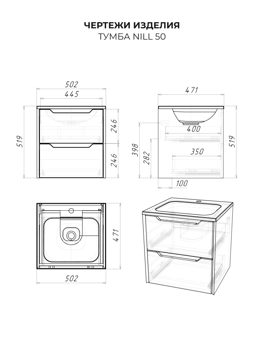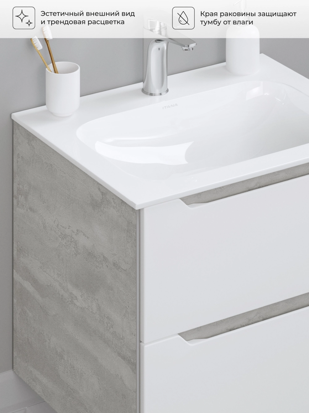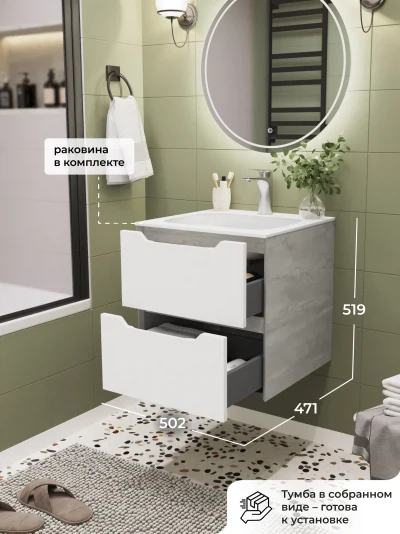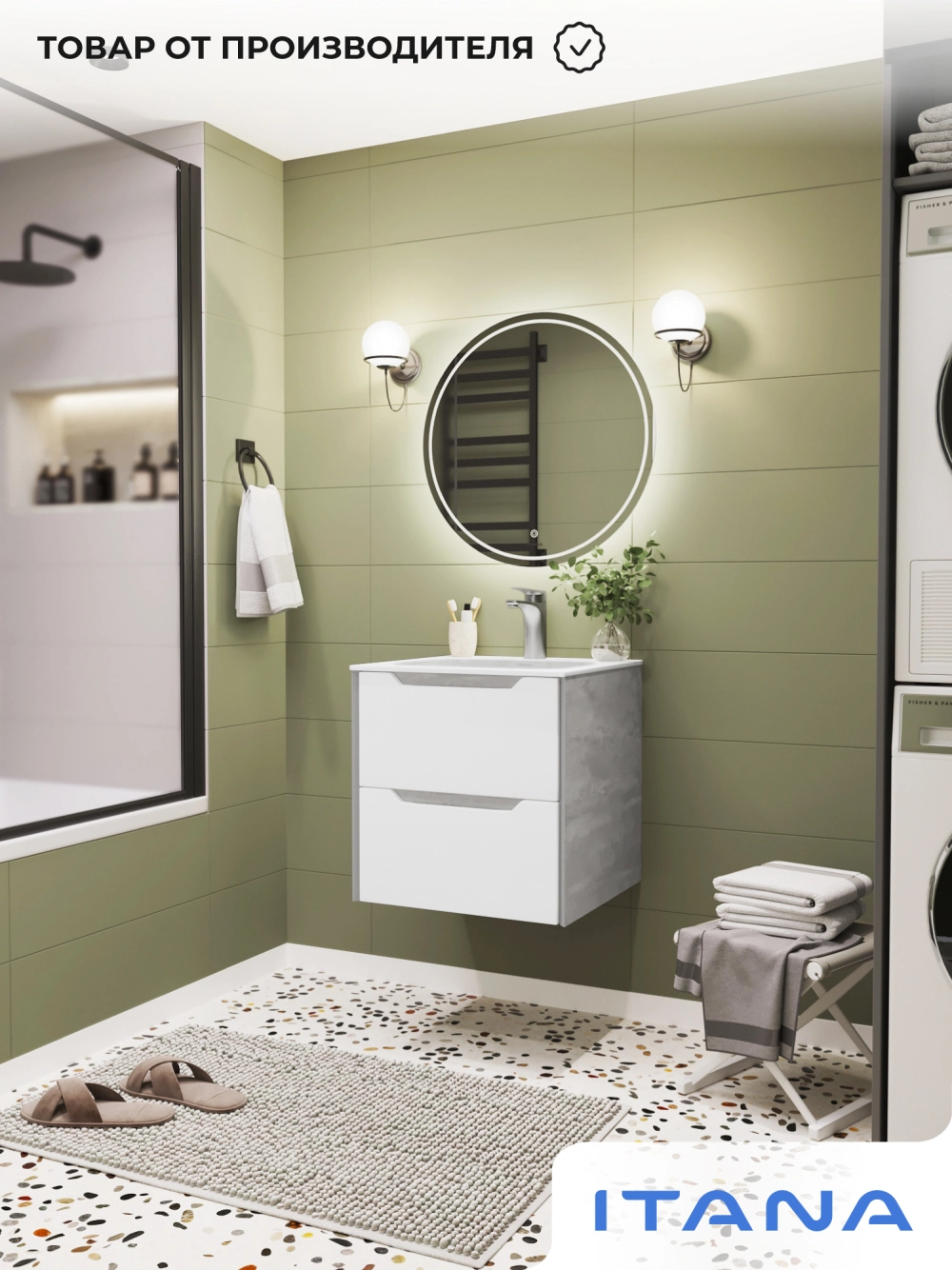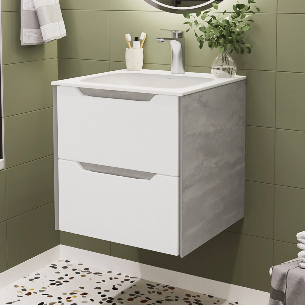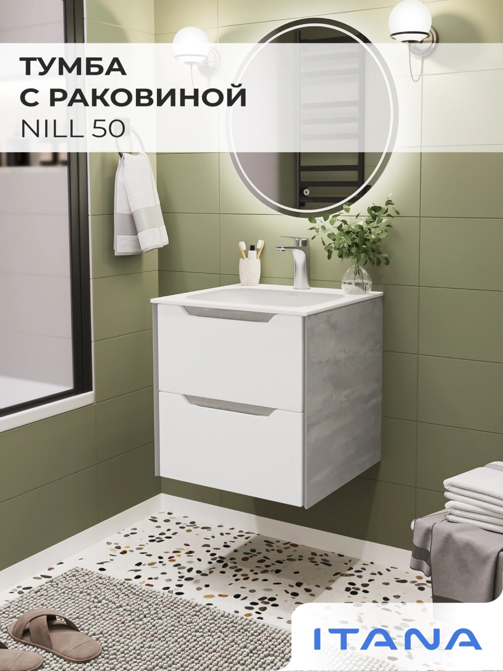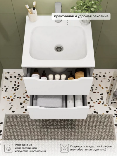 Тумба с раковиной подвесная Итана Nill 50 с выдвижными ящиками Белый глянец