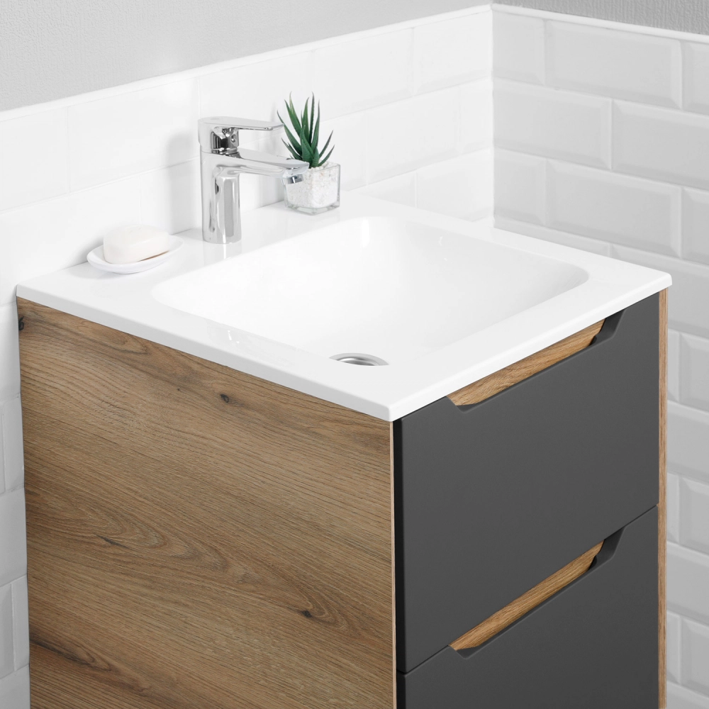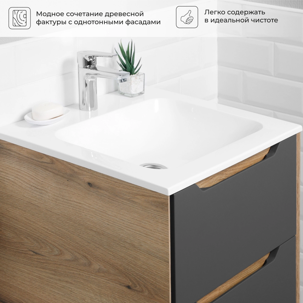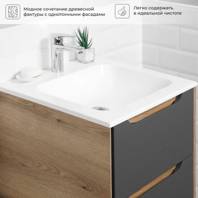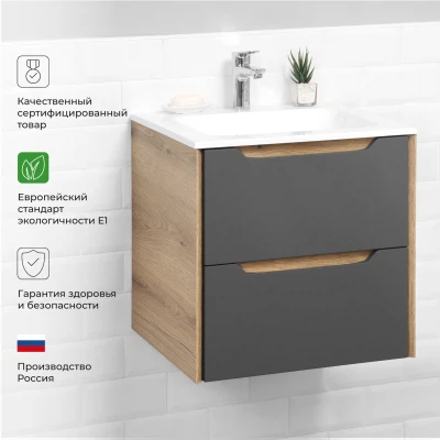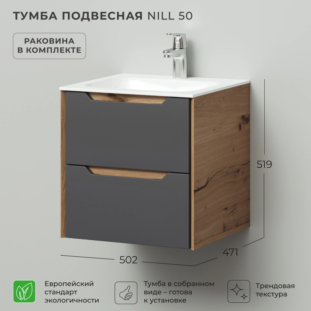 Тумба с раковиной подвесная Итана Nill 50 с выдвижными ящиками Графит