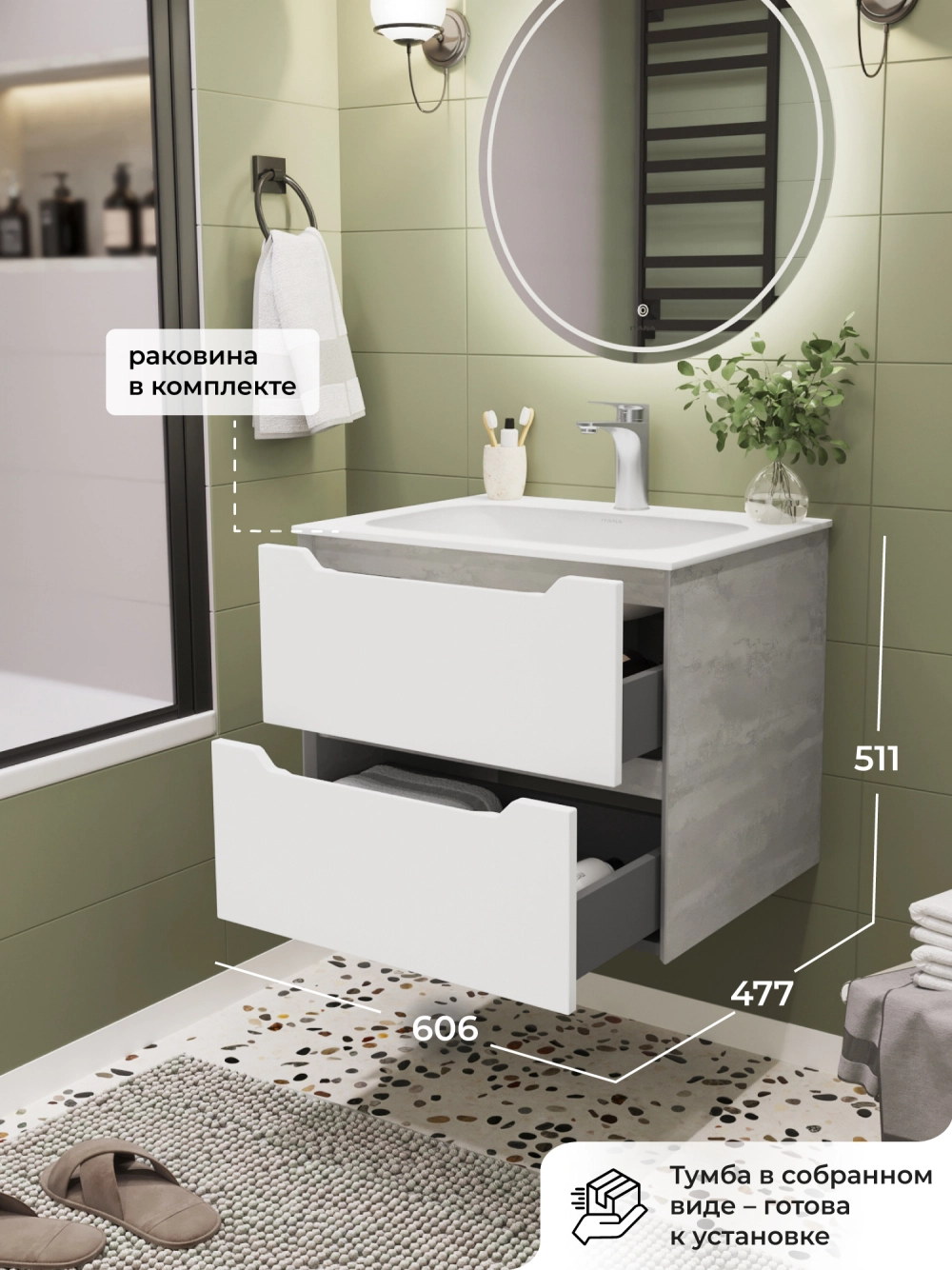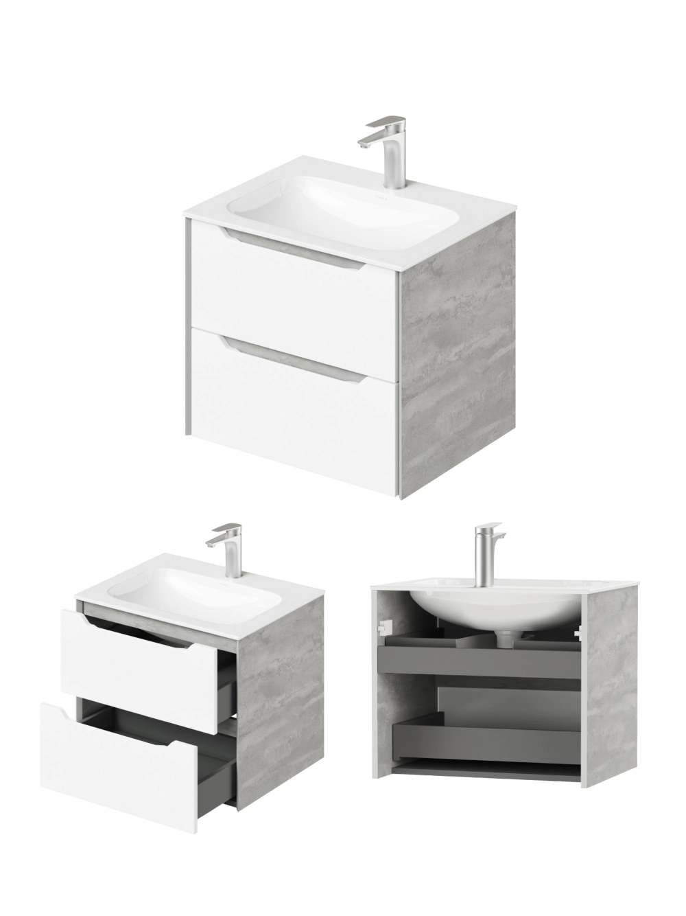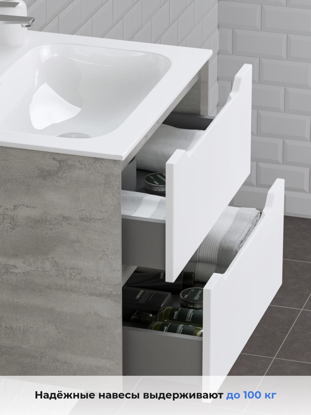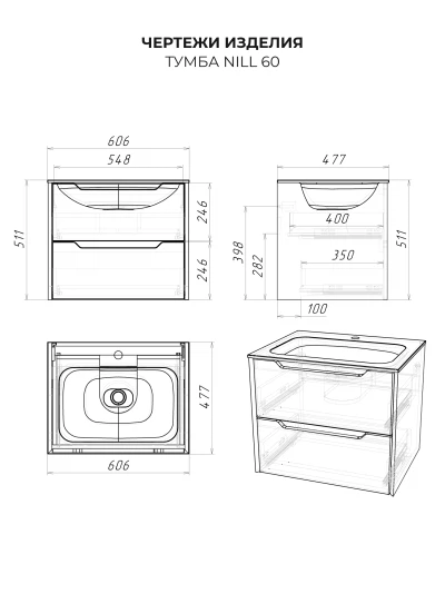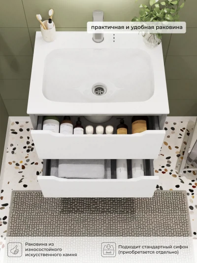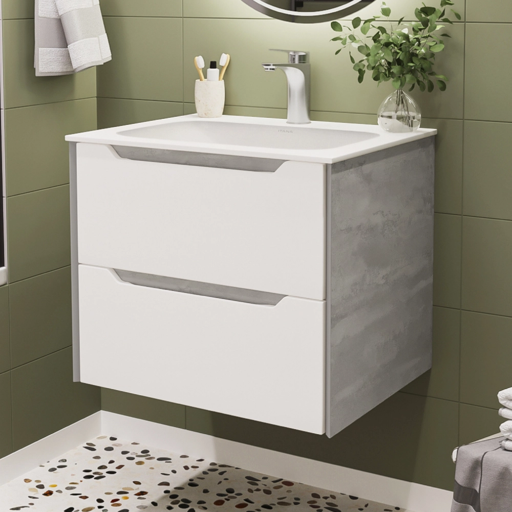 Тумба с раковиной подвесная Итана Nill 60 с выдвижными ящиками Белый глянец