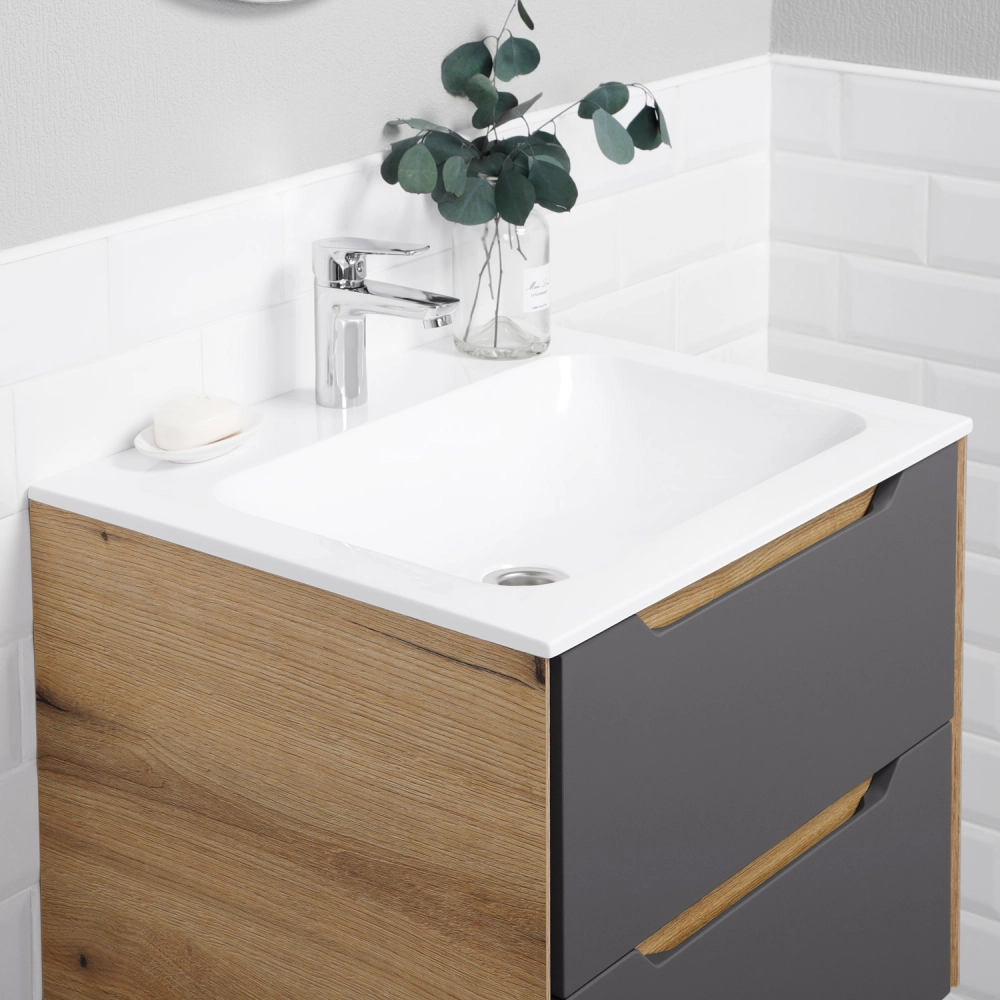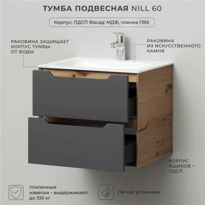 Тумба с раковиной подвесная Итана Nill 60 с выдвижными ящиками Графит
