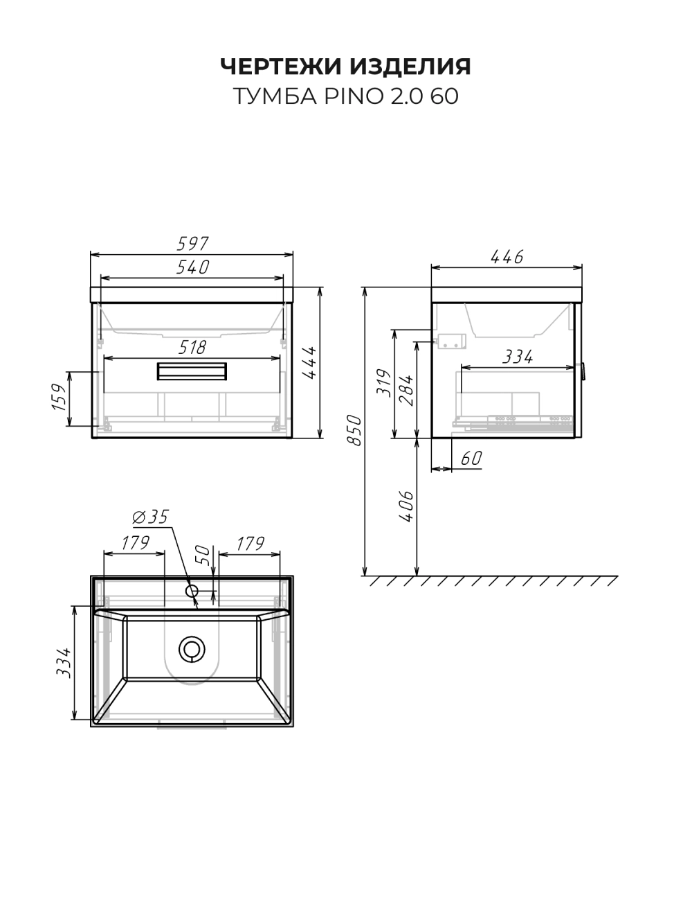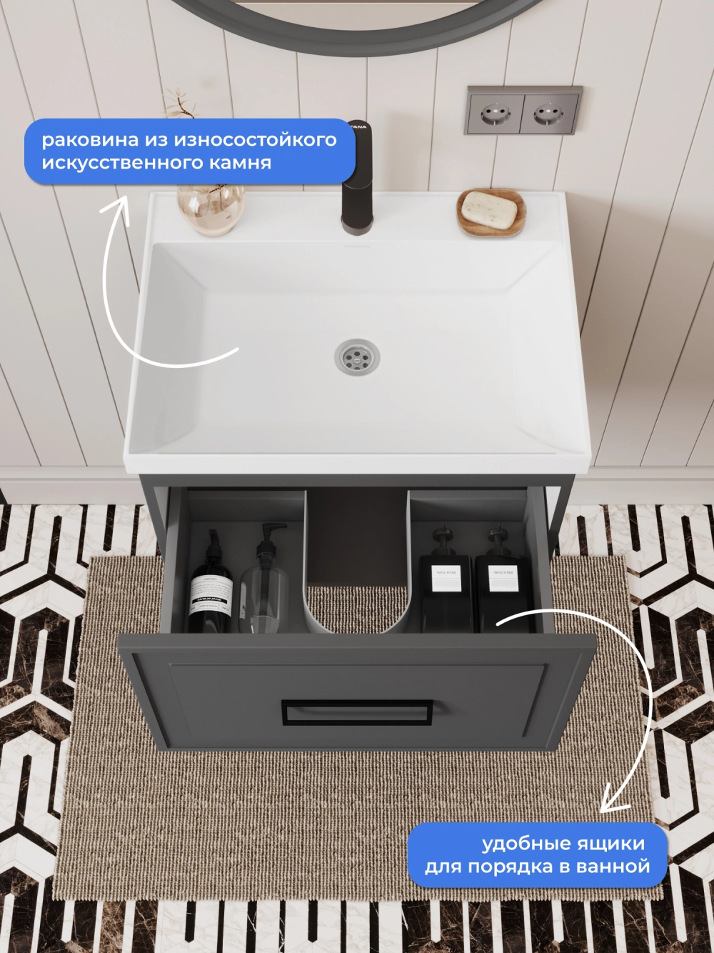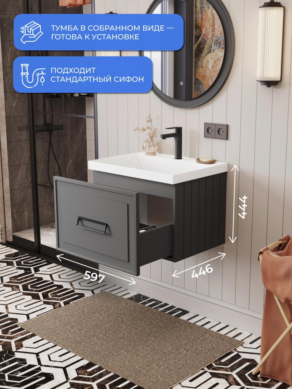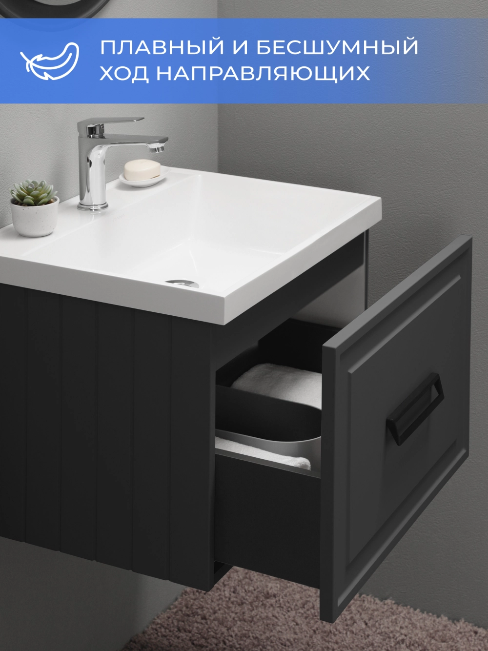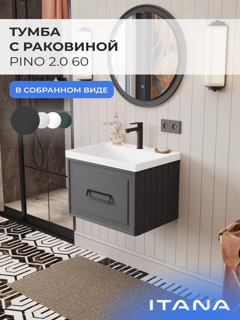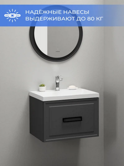 Тумба с раковиной подвесная Итана Pino 2.0 60 с выдвижным ящиком Графит