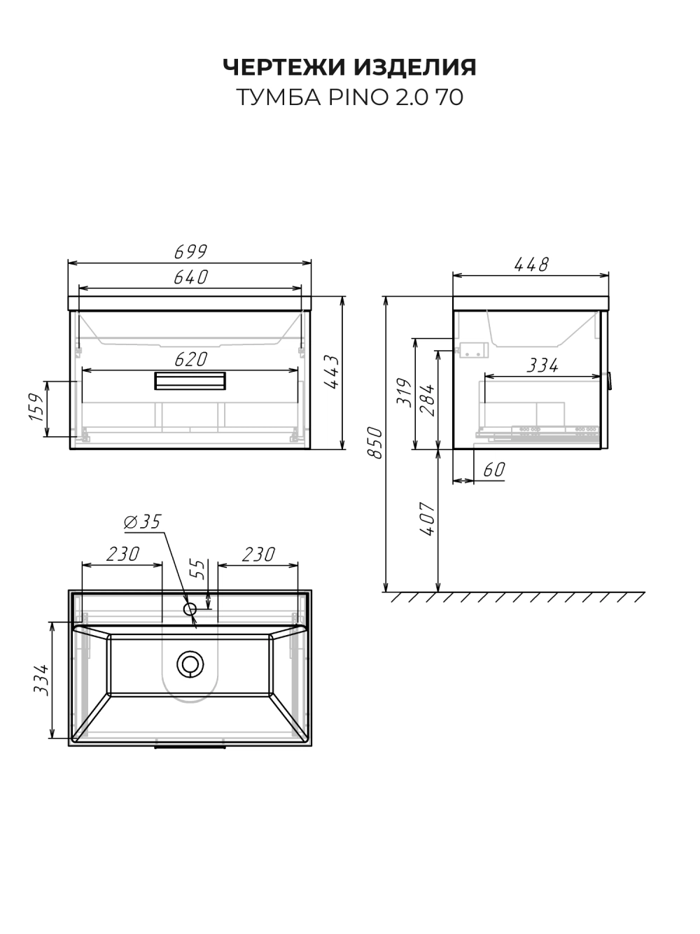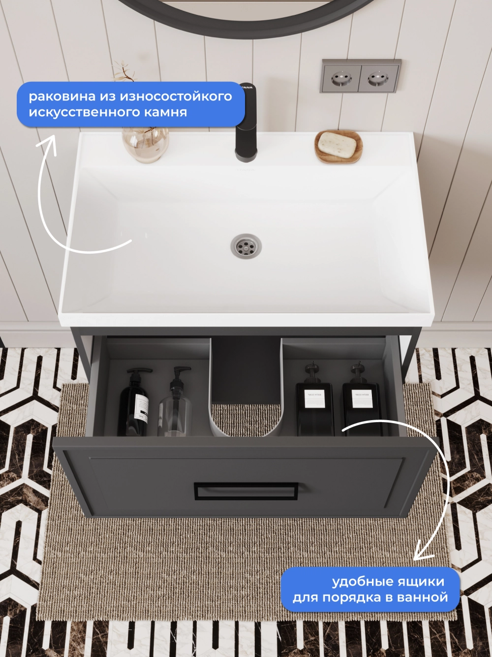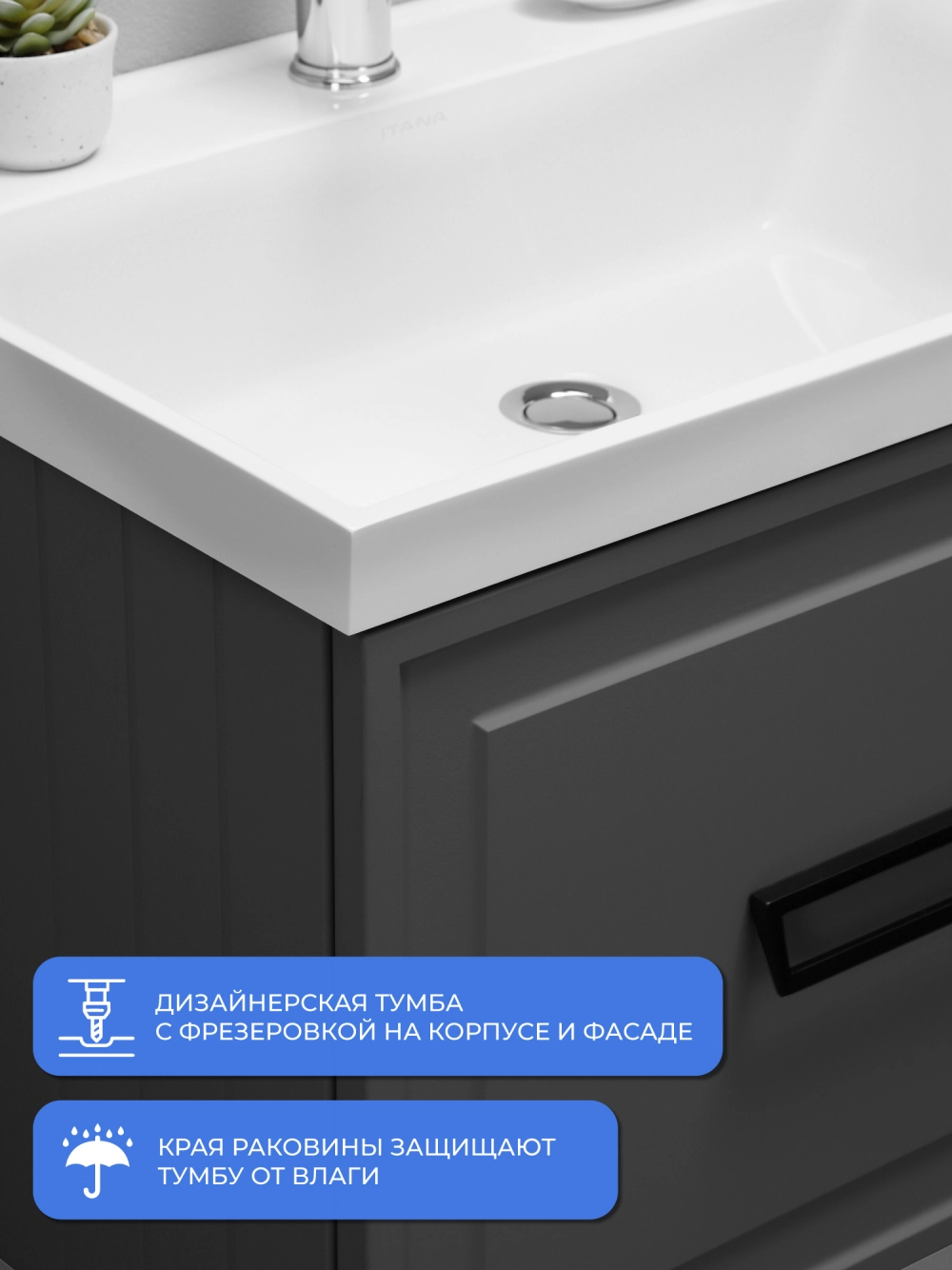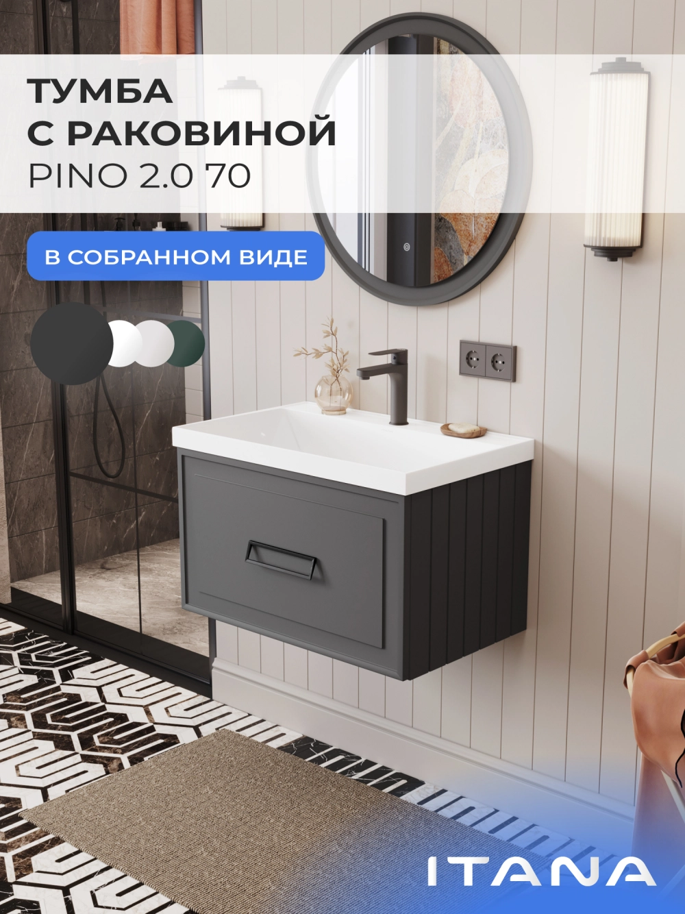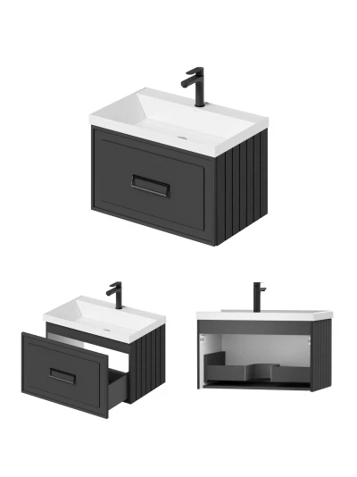 Тумба с раковиной подвесная Итана Pino 2.0 70 с выдвижным ящиком Графит