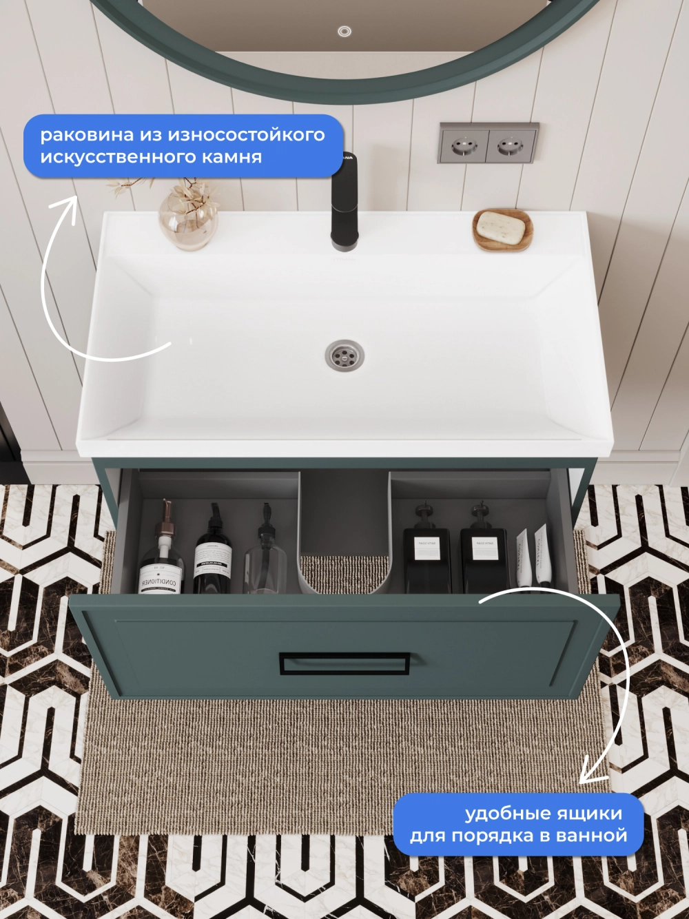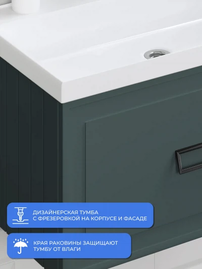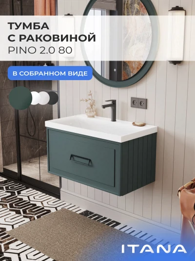 Тумба с раковиной подвесная Итана Pino 2.0 80 с выдвижным ящиком Веллюто Авокадо
