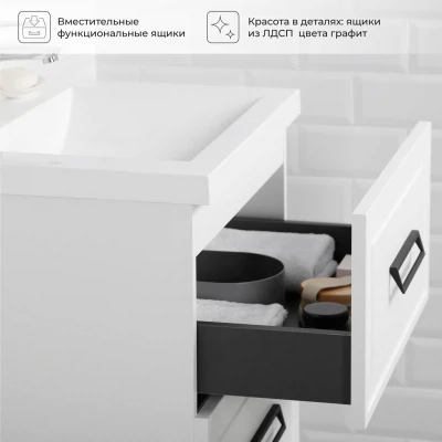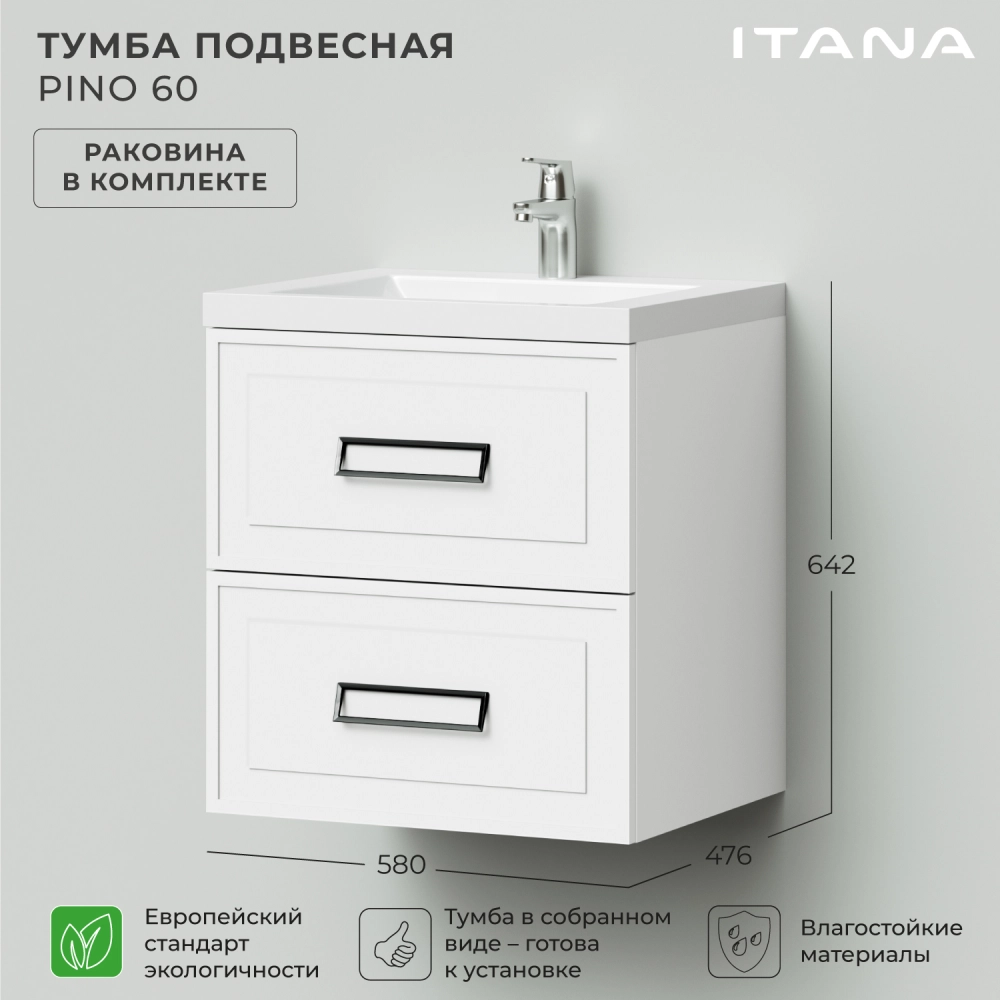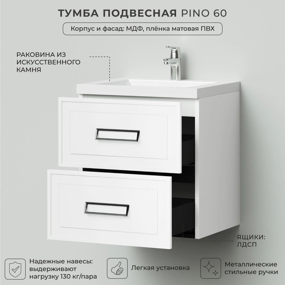 Тумба с раковиной подвесная Итана Pino 60 с выдвижными ящиками Бланж