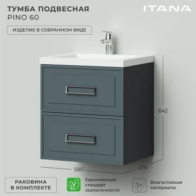Тумба с раковиной в ванную Итана из коллекции Pino. Размеры подвесной тумбы с раковиной 580х476х642 - идеальный выбор для ванной комнаты или туалета. Подвесная конструкция тумбы с раковиной позволяет сэкономить место на полу и визуально расширяет пространство. Тумба с раковиной в ванную подвесная выполнена из МФД и покрыта пленкой ПВХ, что гарантирует долговечность эксплуатации и износостойкость. Качественная фурнитура с доводчиками обеспечивает легкое открывание и плавное закрывание ящиков. Тумба с раковиной с двумя ящиками, где можно рационально распределить и разместить все необходимые вещи для ванной комнаты. Для точного выбора тумбы рекомендуем обратиться к схеме замеров, которая находится на фото в карточке товара. Размеры изделия могут отличаться +/-1 см в связи со спецификой производства. Подвесная тумба с раковиной приходит в надежной упаковке и в собранном виде.