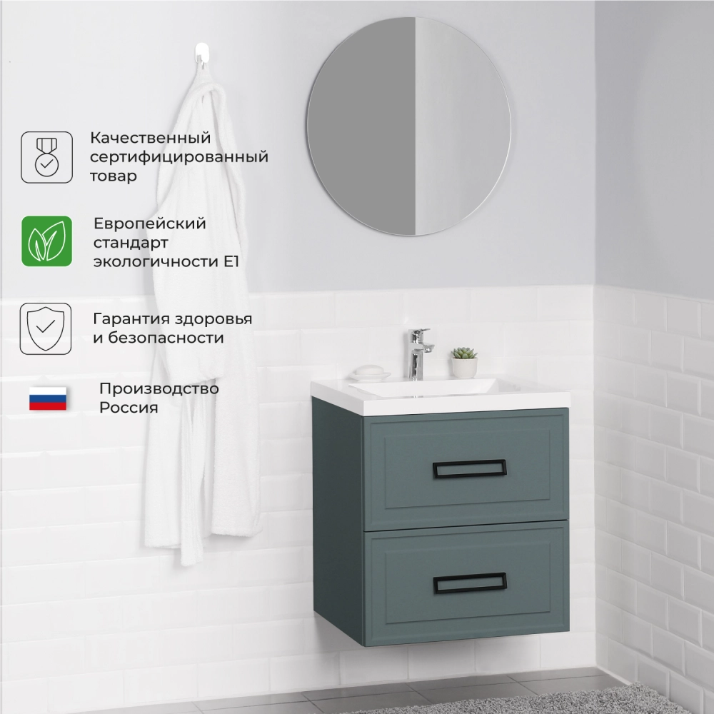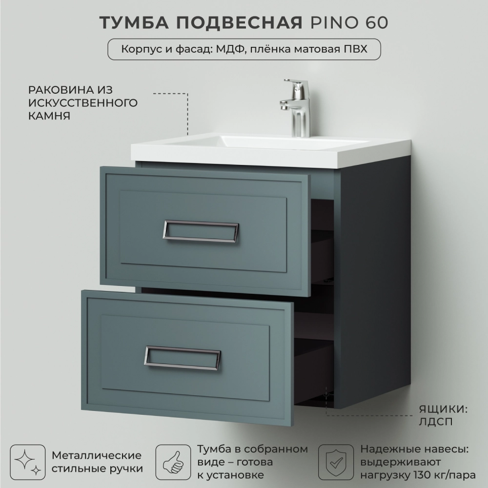 Тумба с раковиной подвесная Итана Pino 60 с выдвижными ящиками Веллюто Авокадо