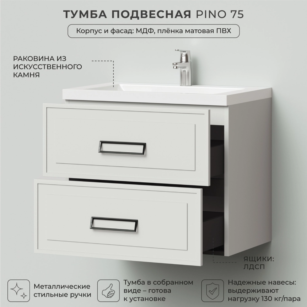 Тумба с раковиной подвесная Итана Pino 75 с выдвижными ящиками Керамик