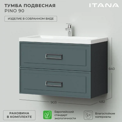 Тумба с раковиной в ванную Итана из коллекции Pino. Размеры подвесной тумбы с раковиной 903х482х640 - идеальный выбор для ванной комнаты или туалета. Подвесная конструкция тумбы с раковиной позволяет сэкономить место на полу и визуально расширяет пространство. Тумба с раковиной в ванную подвесная выполнена из МФД и покрыта пленкой ПВХ, что гарантирует долговечность эксплуатации и износостойкость. Качественная фурнитура с доводчиками обеспечивает легкое открывание и плавное закрывание ящиков. Тумба с раковиной с двумя ящиками, где можно рационально распределить и разместить все необходимые вещи для ванной комнаты. Для точного выбора тумбы рекомендуем обратиться к схеме замеров, которая находится на фото в карточке товара. Размеры изделия могут отличаться +/-1 см в связи со спецификой производства. Подвесная тумба с раковиной приходит в надежной упаковке и в собранном виде.