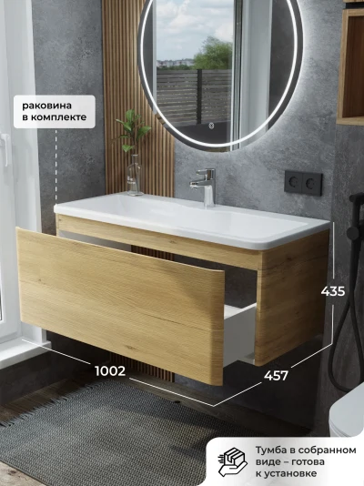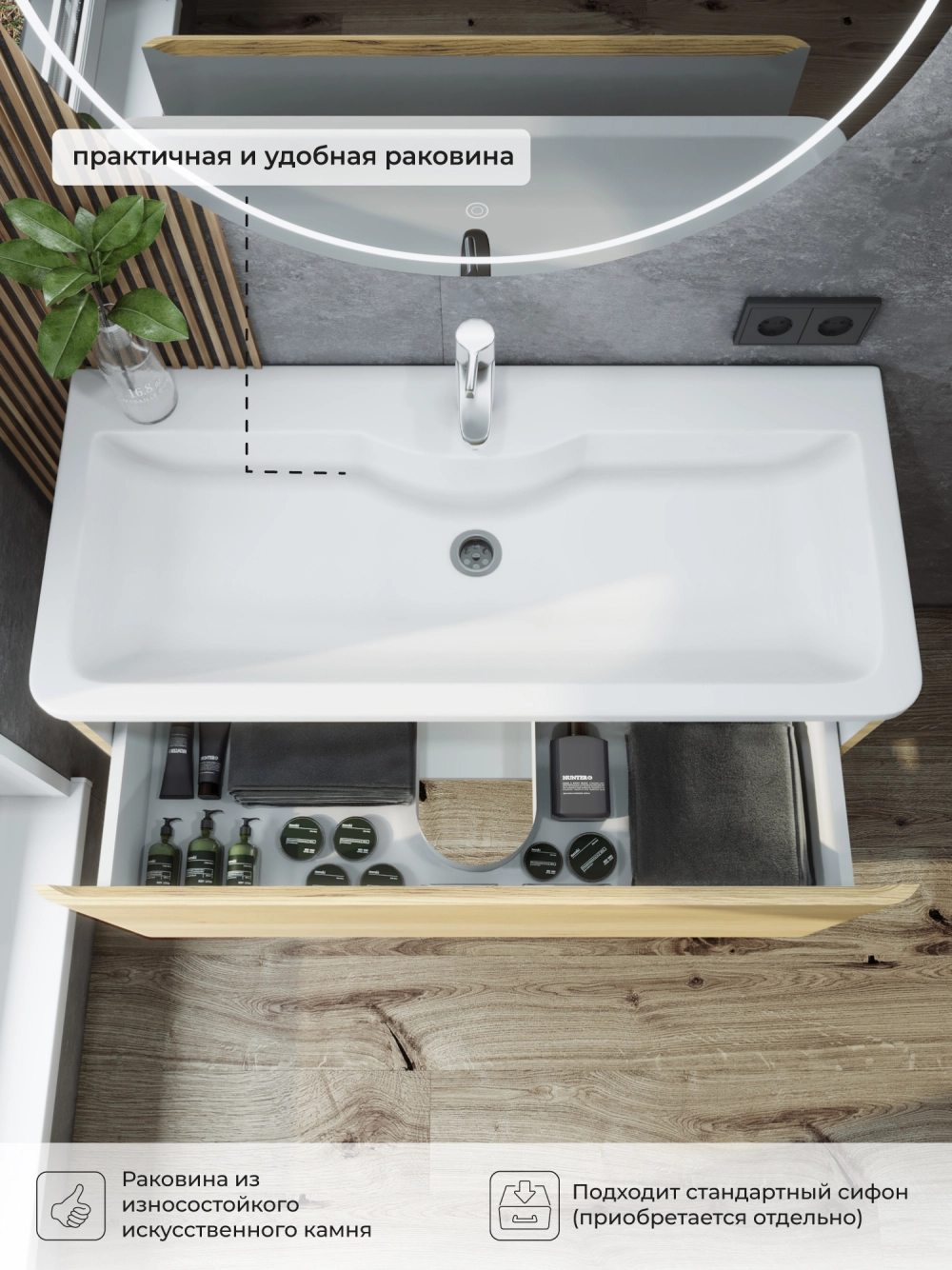 Тумба с раковиной подвесная Итана Roberto 100 с выдвижным ящиком Дуб Мавелла Голд
