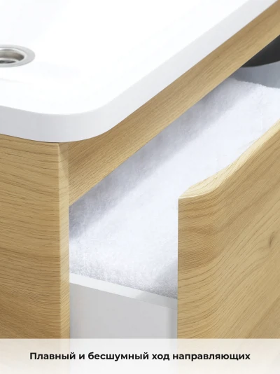 Подвесная тумба с раковиной в ванную из коллекции Roberto - это сочетание современной стилистики и богатого функционала. Тумба для ванны изготовлена из прочного МДФ, поэтому выдерживает высокие эксплуатационные нагрузк и обеспечивает дополнительную защиту тумбы с раковиной от влаги и перепадов температуры. Качественная фурнитура с доводчиками обеспечивает легкое открывание и плавное закрывание ящиков. Вырез под сифон универсальный, для любого типа. Благодаря своей конструкции тумба обеспечивает удобный доступ к раковине и позволяет скрыть коммуникации. Тумба с раковиной в ванную оснащена удобным ящиком для хранения, что позволяет разместить всё необходимое под рукой. Ручки интегрированы в фасад, что исключает возможность случайного удара о фурнитуру. Для точного выбора тумбы с раковиной в ванную комнату рекомендуем обратиться к схеме замеров, которая находится на фото в карточке товара, размеры изделия могут отличаться +/-1 см в связи со спецификой производства. Тумба для ванной доставляется в предварительно собранном виде, надежно упакована.