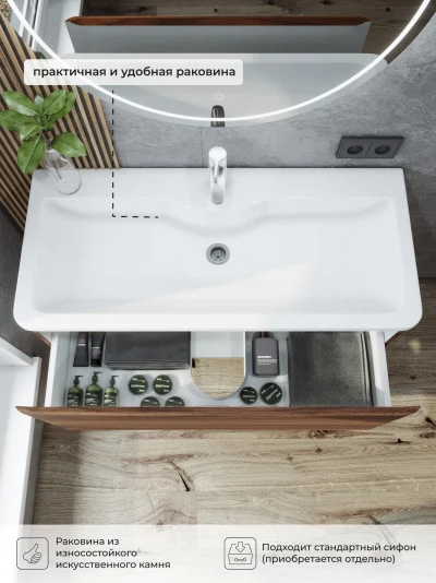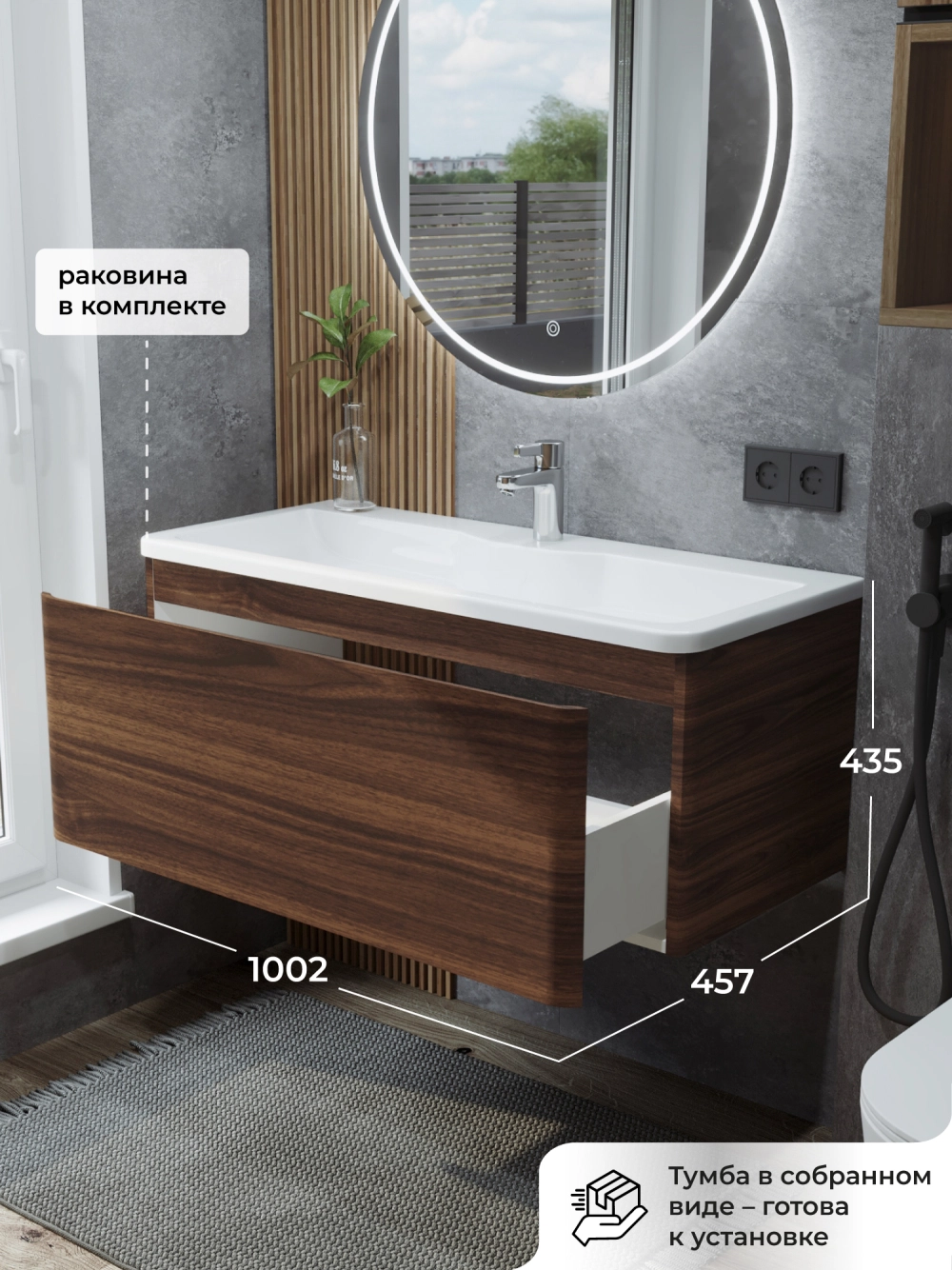 Тумба с раковиной подвесная Итана Roberto 100 с выдвижным ящиком Орех Пекан шоколад стронг