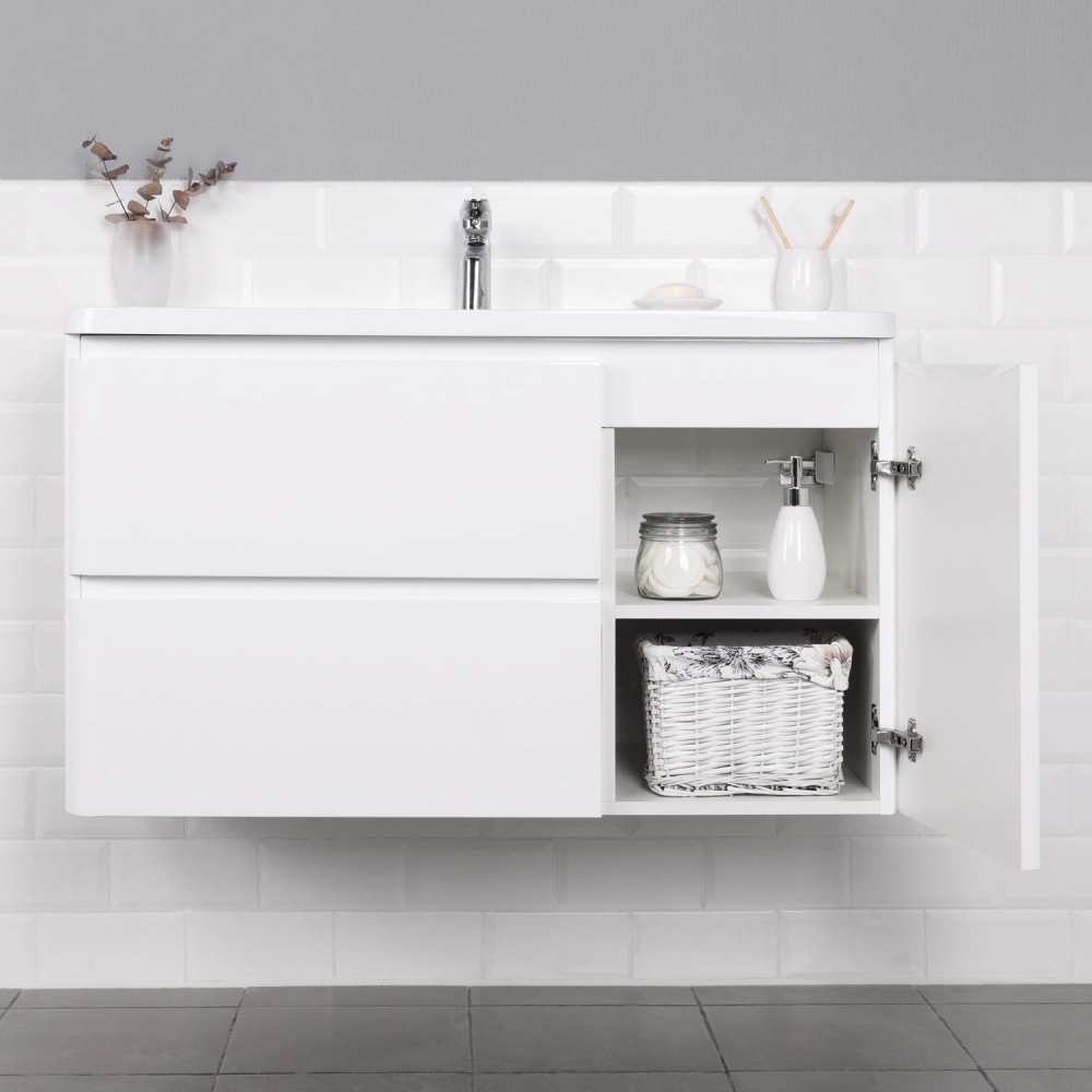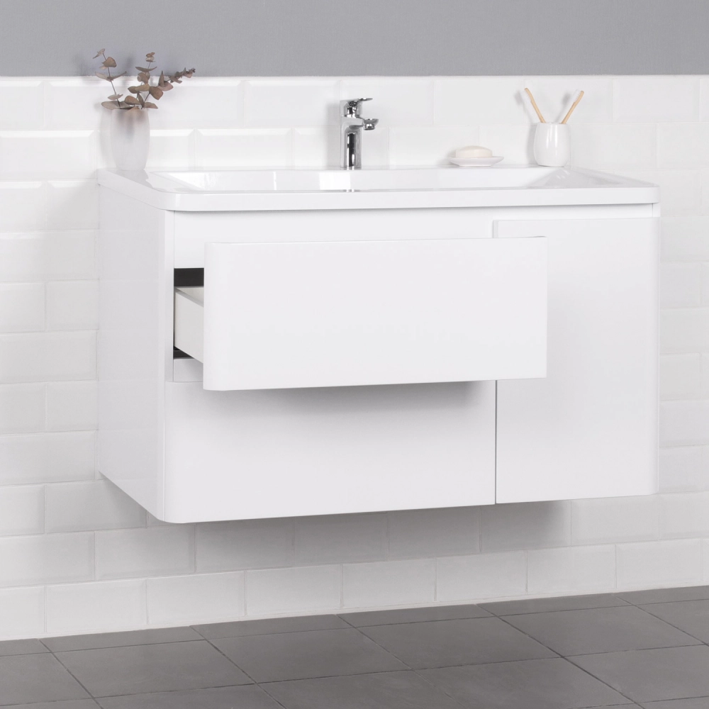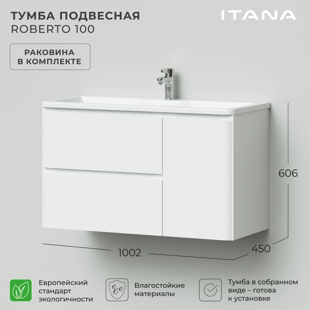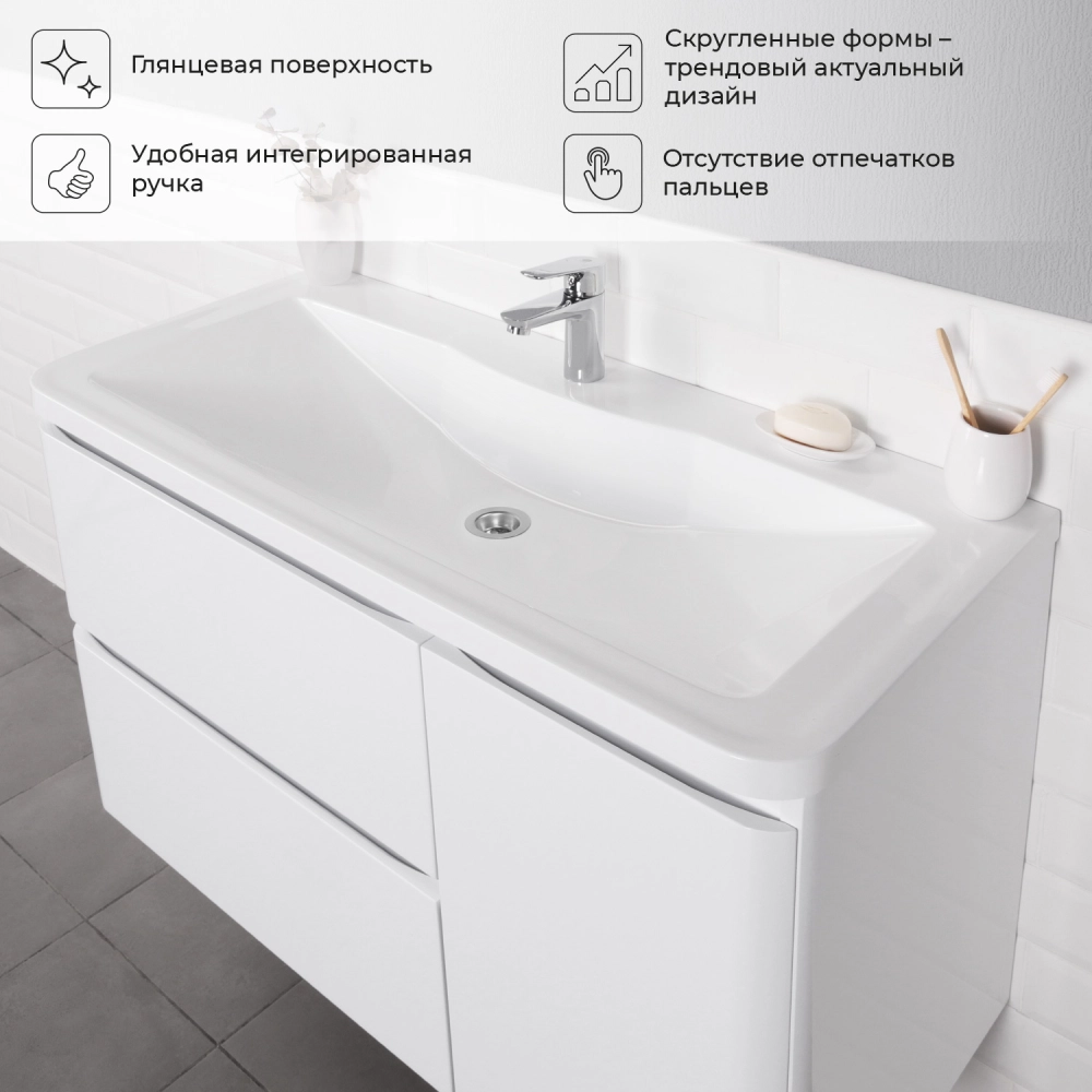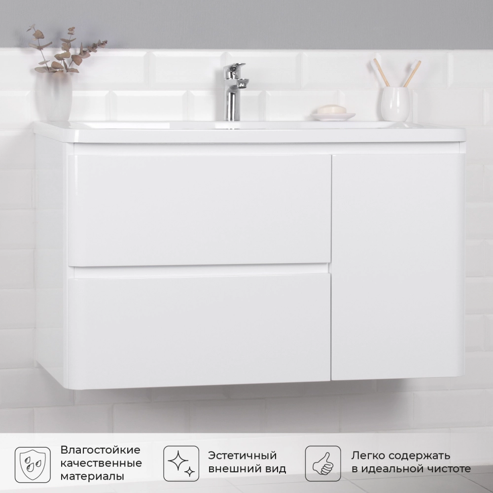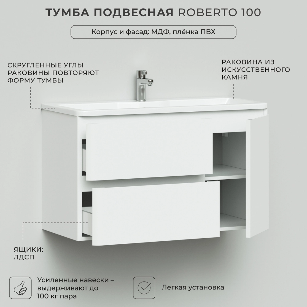 Тумба с раковиной подвесная Итана Roberto 100 с выдвижными ящиками Белый Глянец