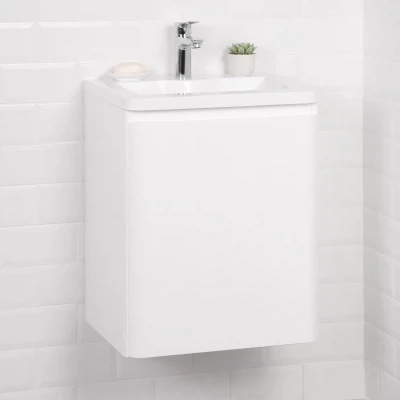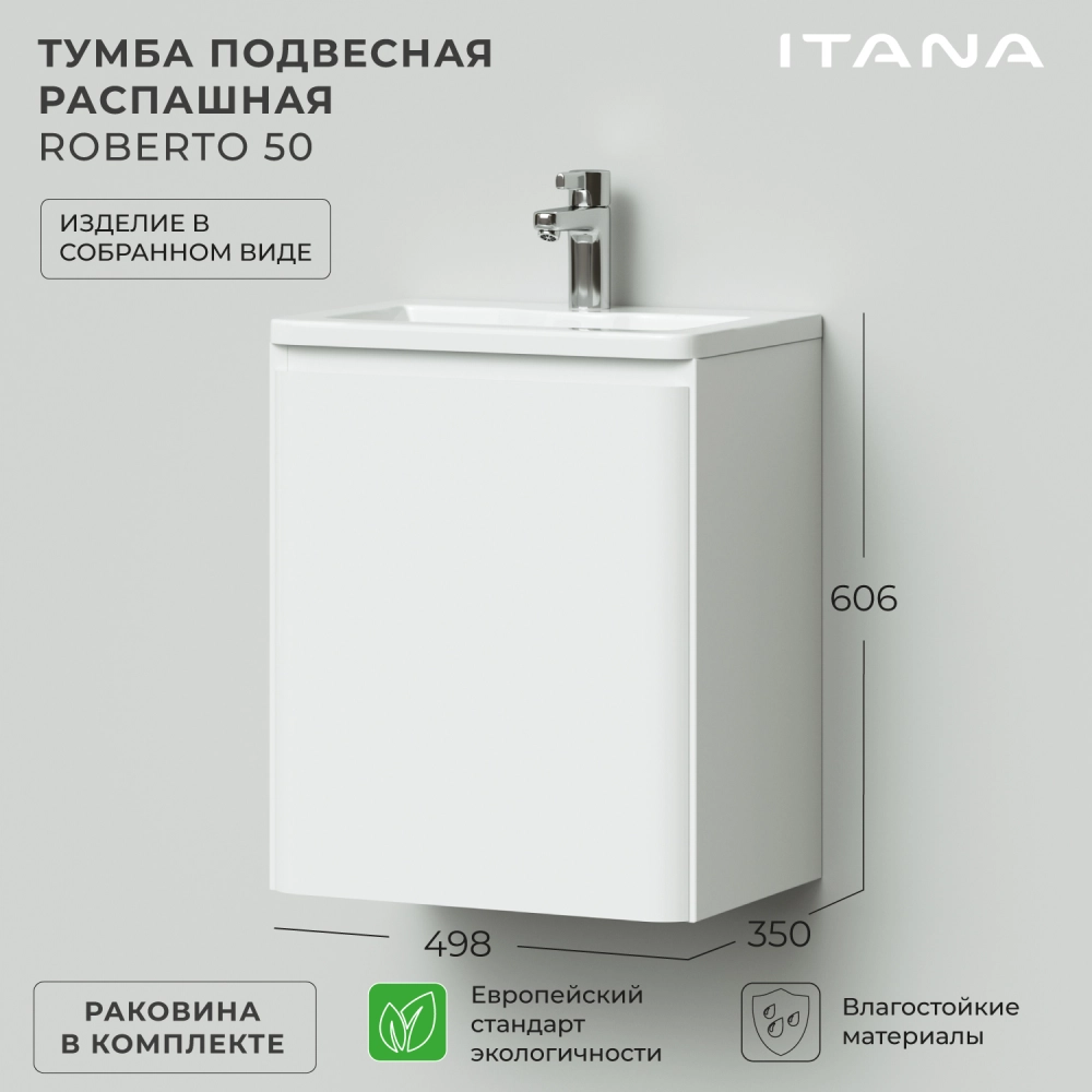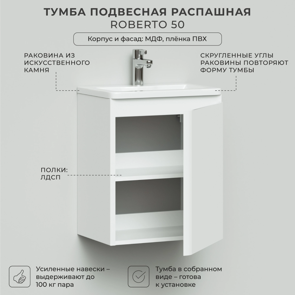 Тумба с раковиной подвесная Итана Roberto 50 с распашной дверцей Белый Глянец